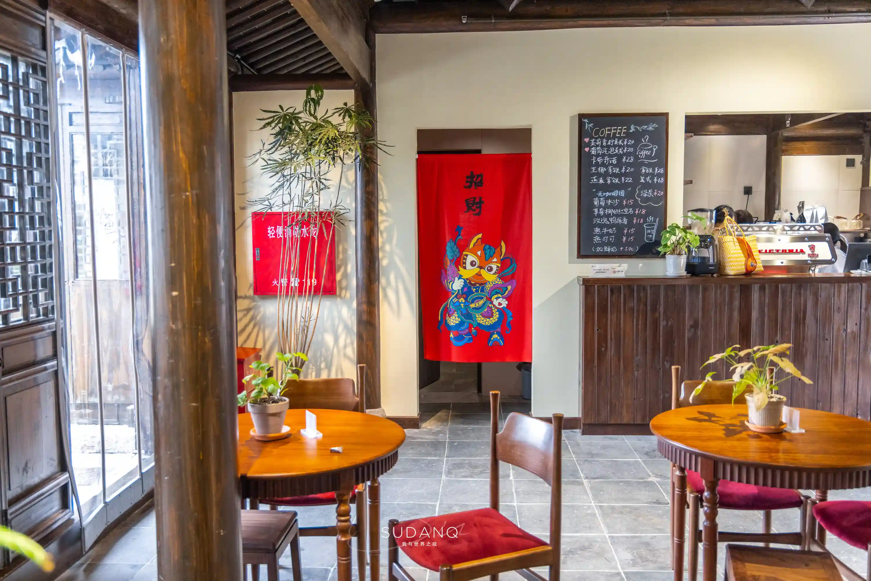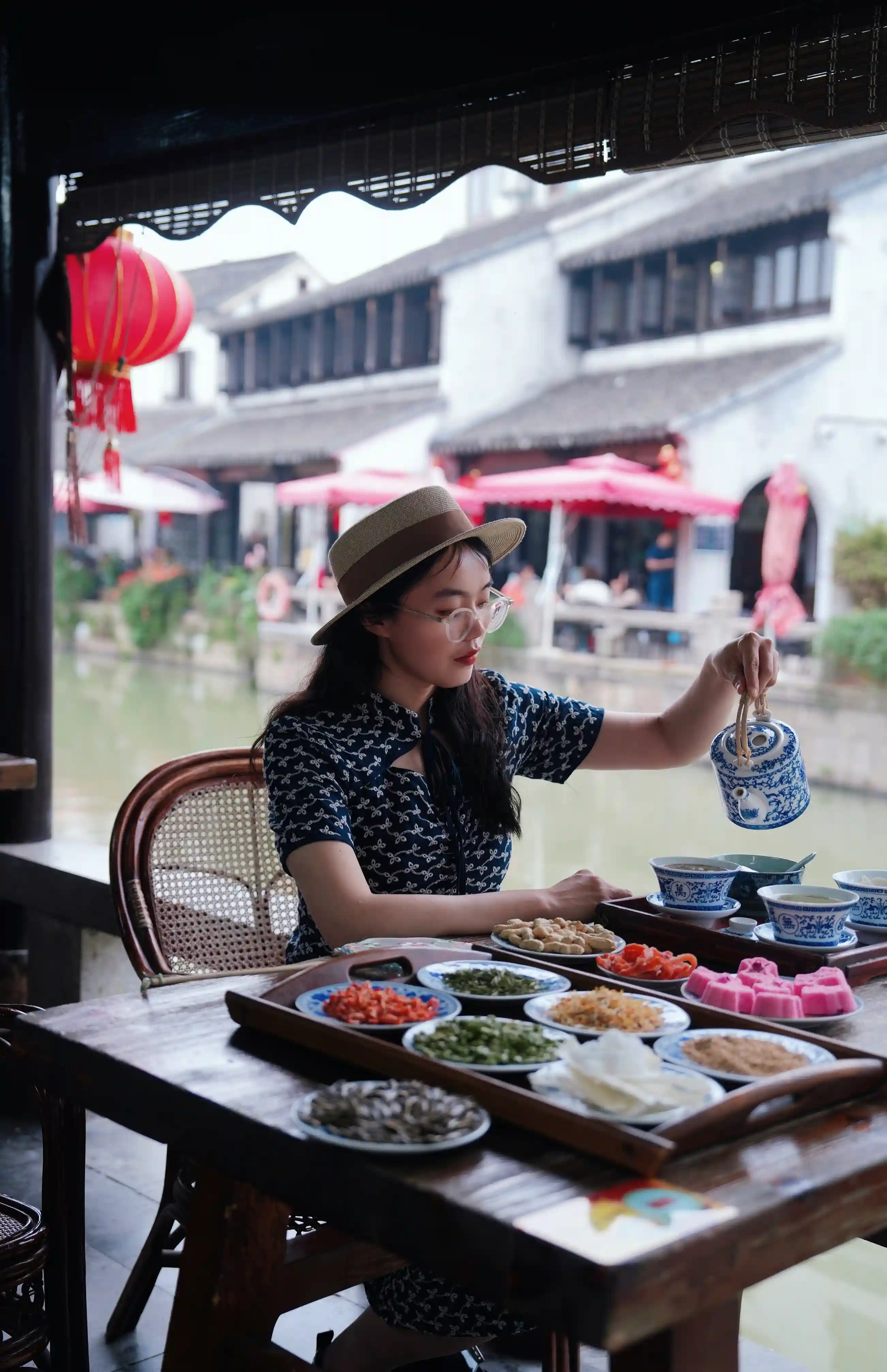 如果说,吃四碗茶是一种对古典生活的追求,那么浜兜咖啡的氛围就是古今交融了。古色古香的沿河小房子被改造出颇具文艺的咖啡馆,馆内环境富有东方古典美。