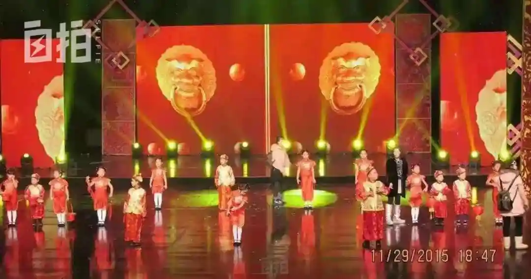 2016年,我带学生们参加黑龙江省电视台播出的少儿春晚,学生们正在台上彩排。