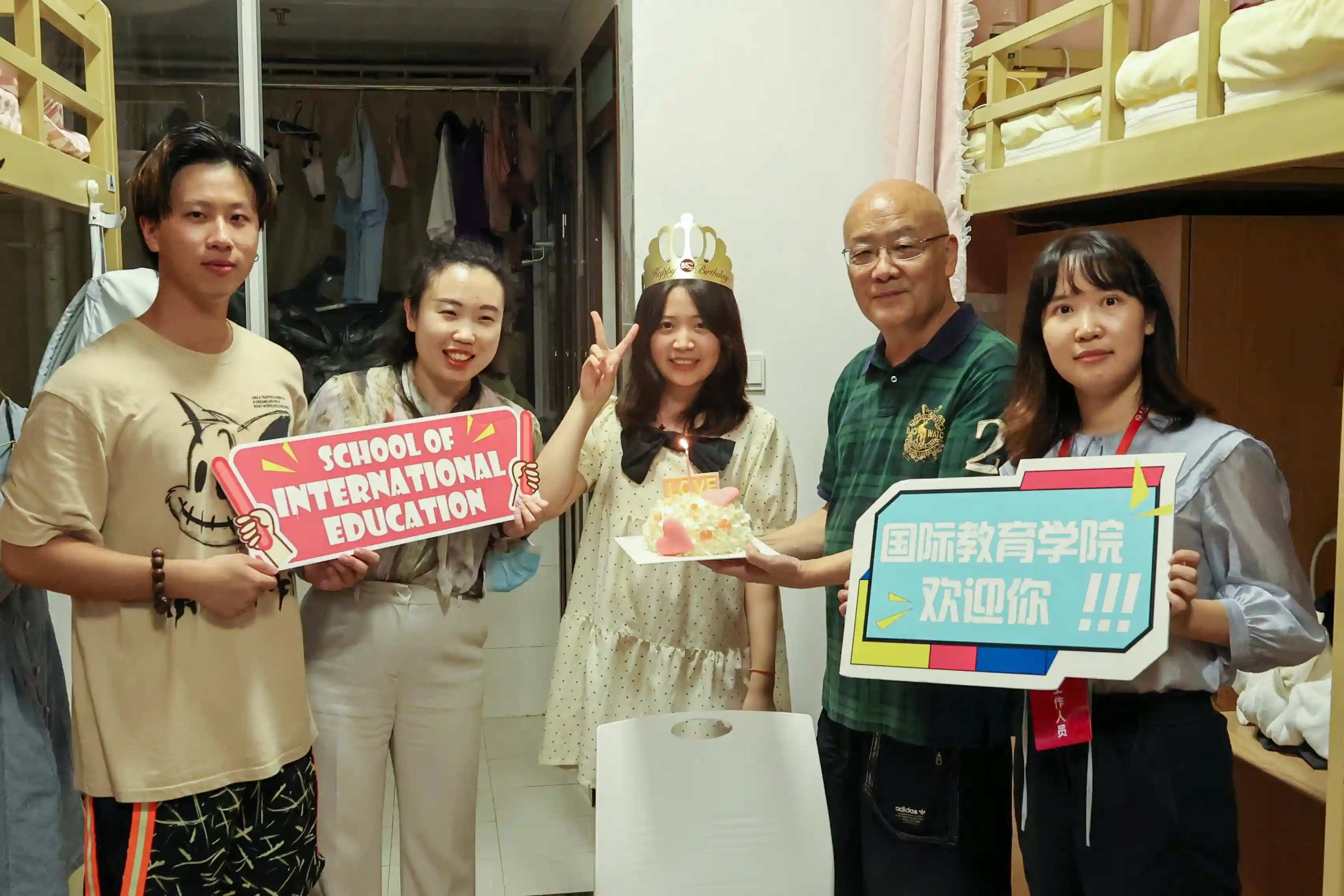 在报到当天,恰逢是18位新生的生日,他们最小的刚成年,最大的20岁。校长黄亚钧亲手为他们点燃了生日蜡烛,并带领“小寿星”们一起切蛋糕。全场唱响生日歌,让“小寿星”们许愿时,有一位同学握紧双手,闭着眼想了很久,幽默的黄校打趣到:“你许了这么多愿呀!”黄校风趣的语气缓解了新生们第一天到校的紧张与不安,暖心的活动也让大家感受到了离家后的第一份温暖。