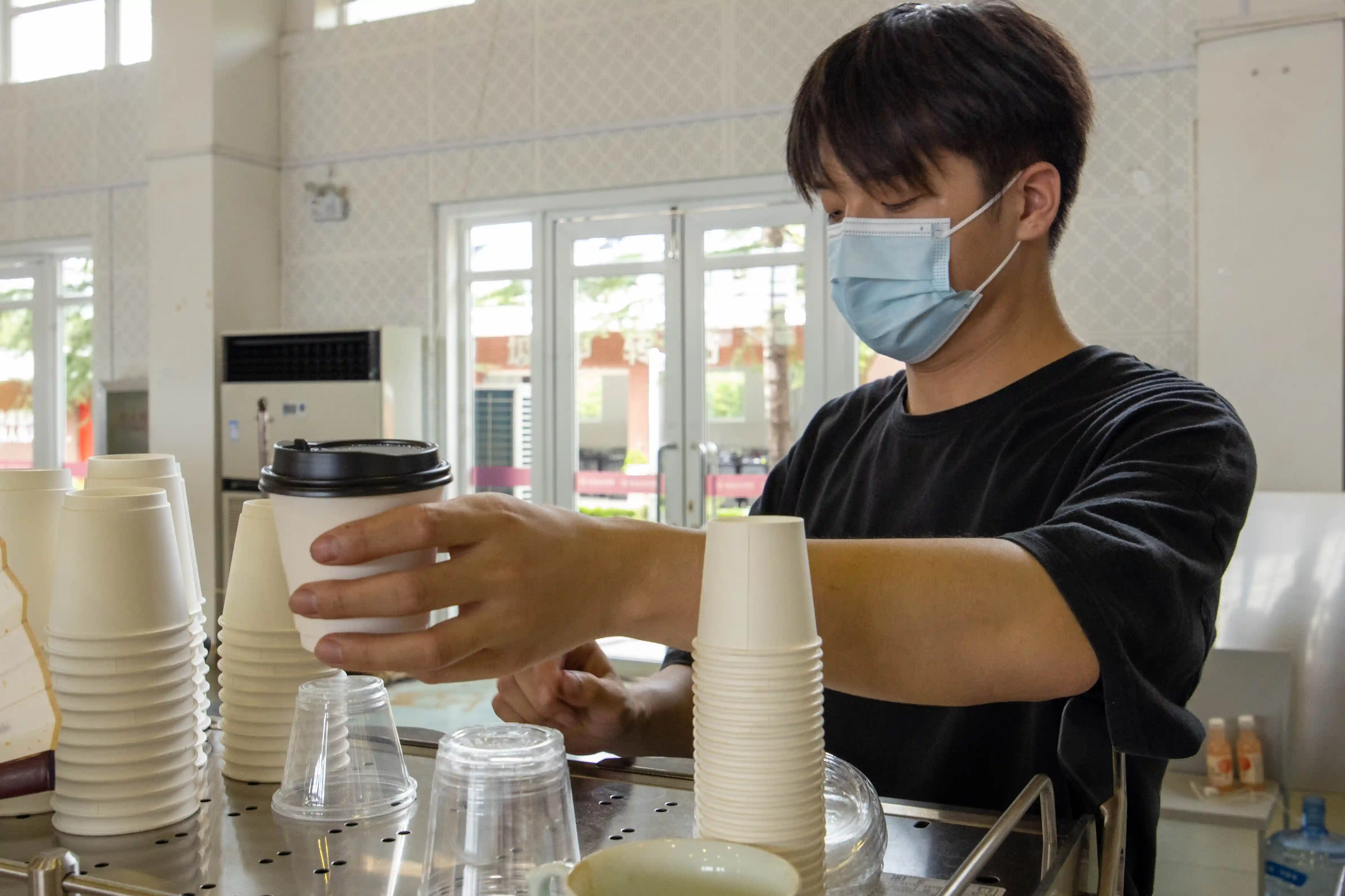 看着咖啡台前的晏晏笑颜的同学们,李赛超同学不仅将“诚以待人”的校训贯彻到了一言一行中,更是坚定地从老生传承到了新生!