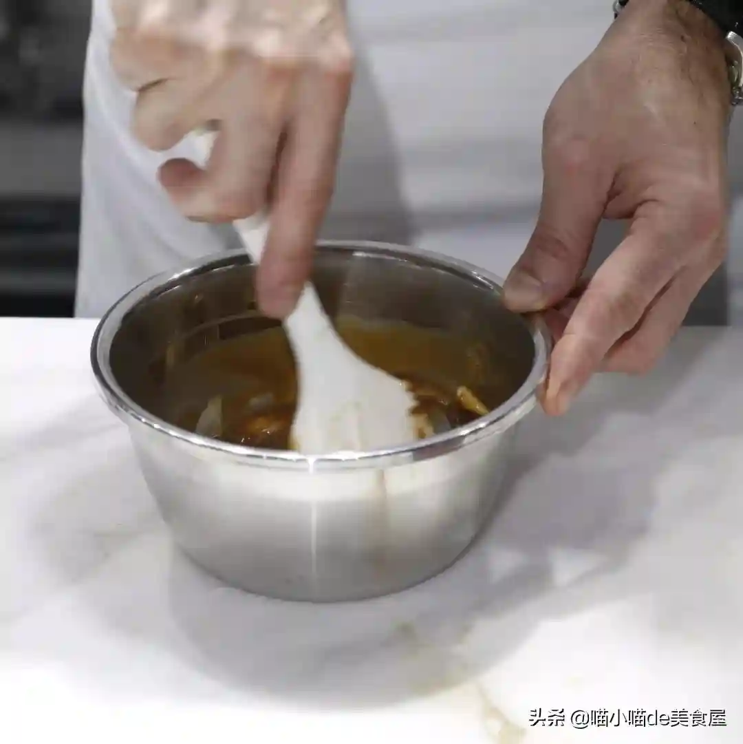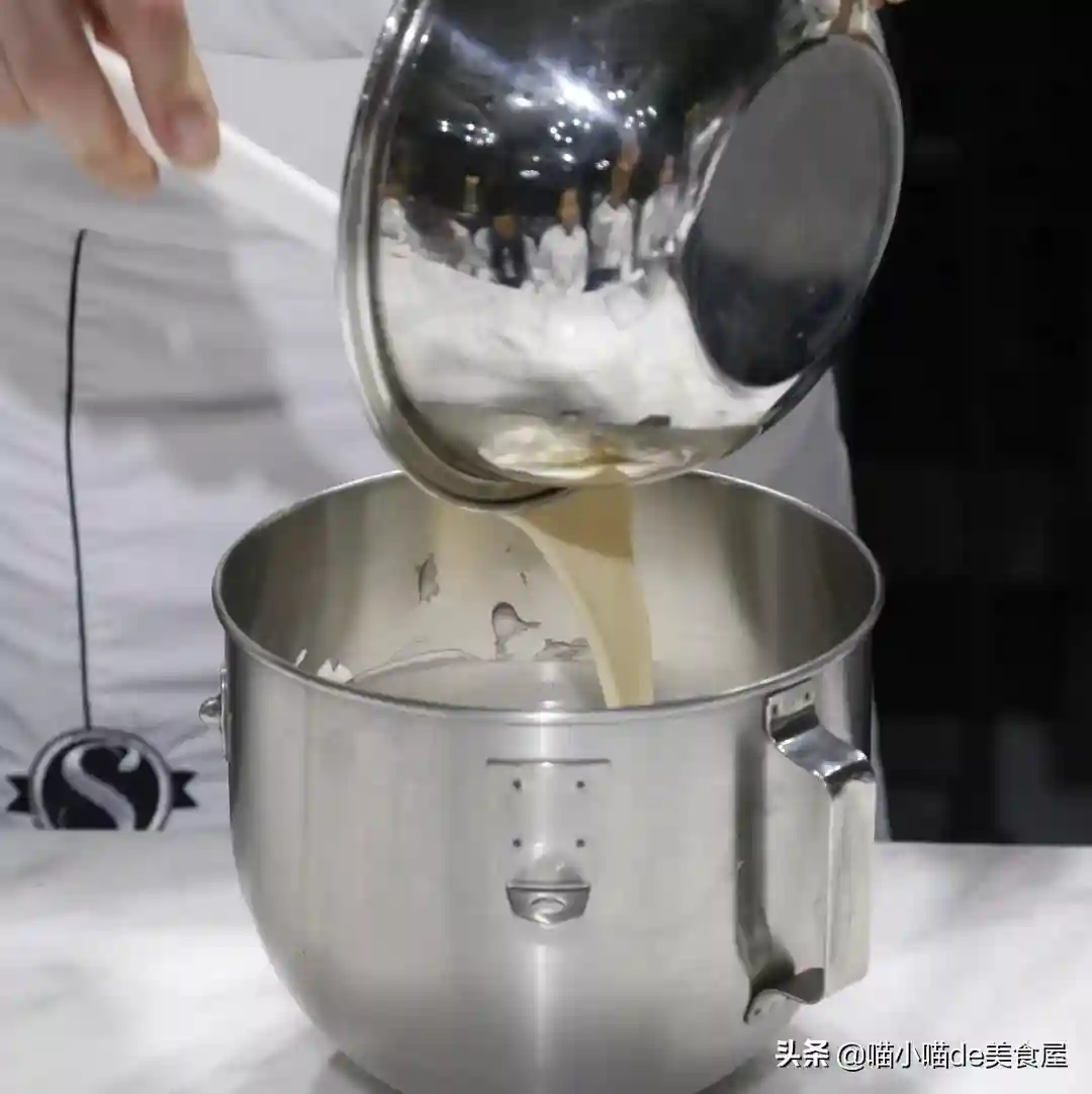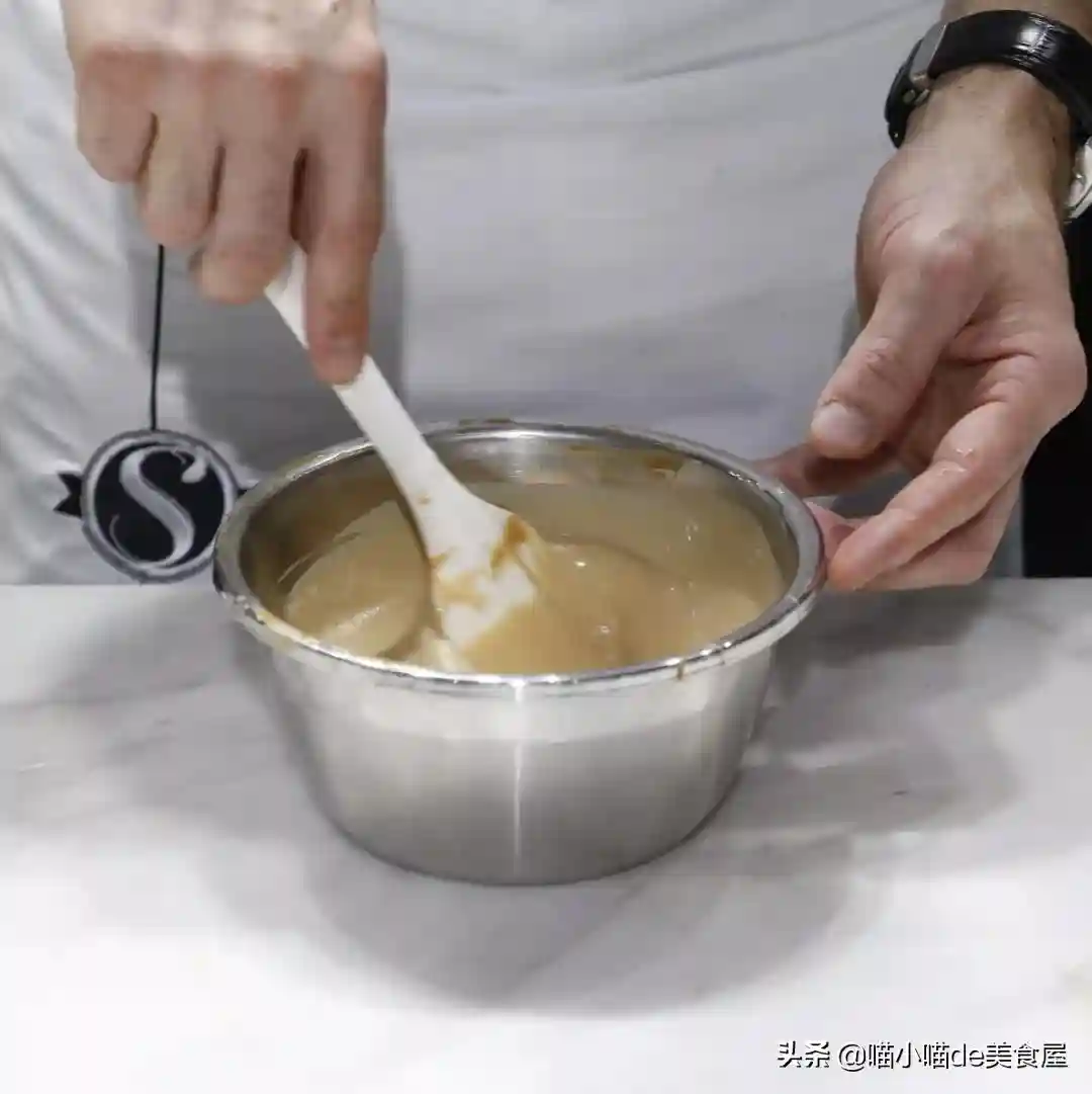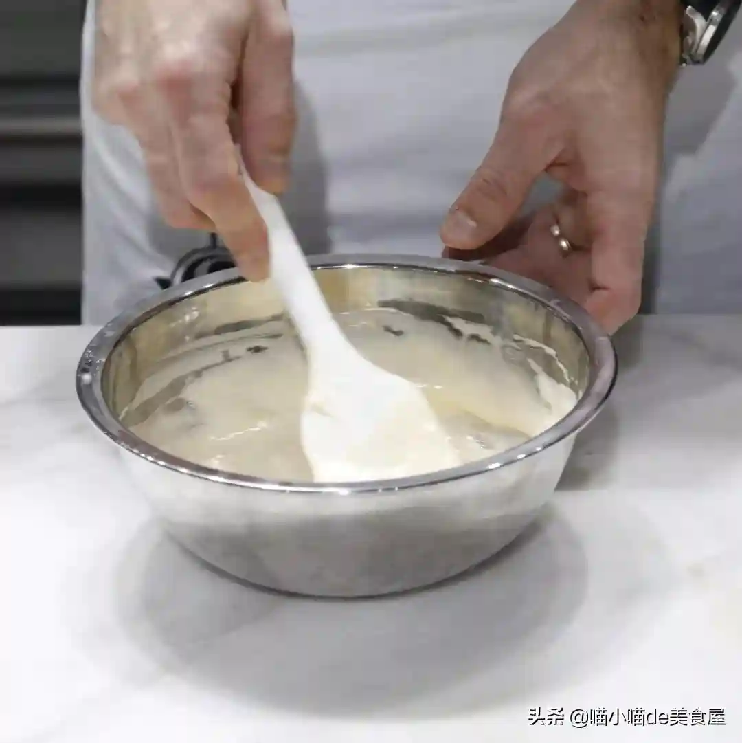 4.将“步骤2”分次倒入“步骤3”中,使用橡皮刮刀搅拌均匀。