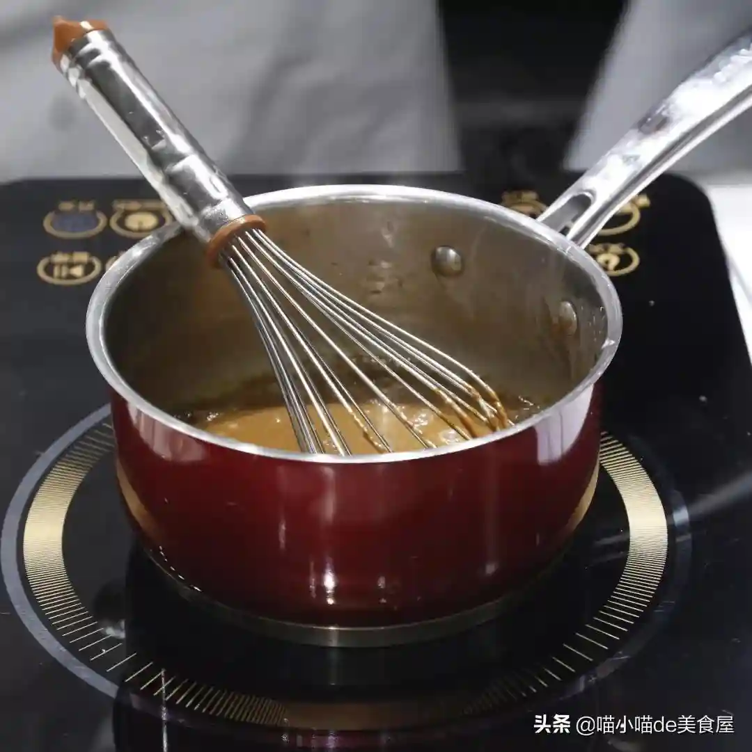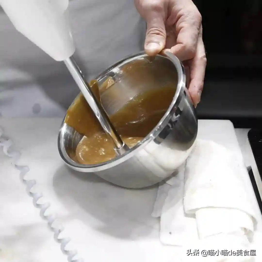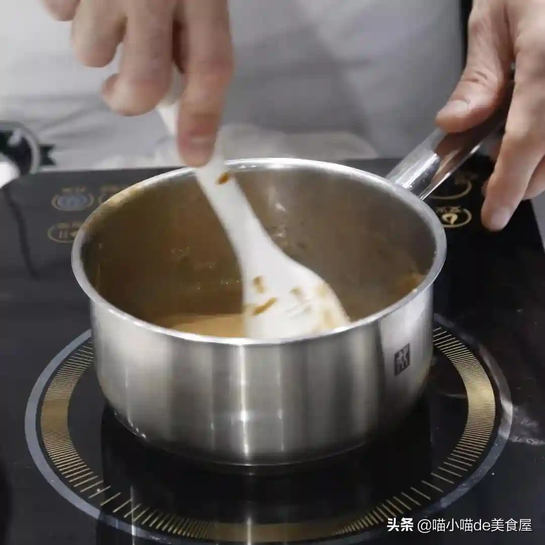 制作过程:1.将淡奶油,葡萄糖浆、转化糖和榛果酱倒入锅中,加入煮沸,离火。