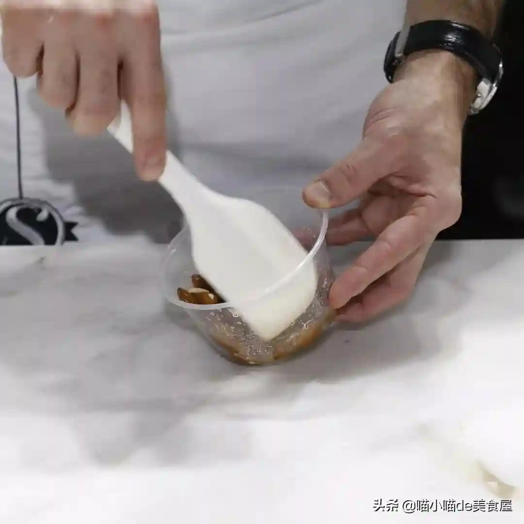 制作过程:1.将生扁桃仁、蜂蜜、波美糖浆混合,使用橡皮刮刀搅拌均匀。