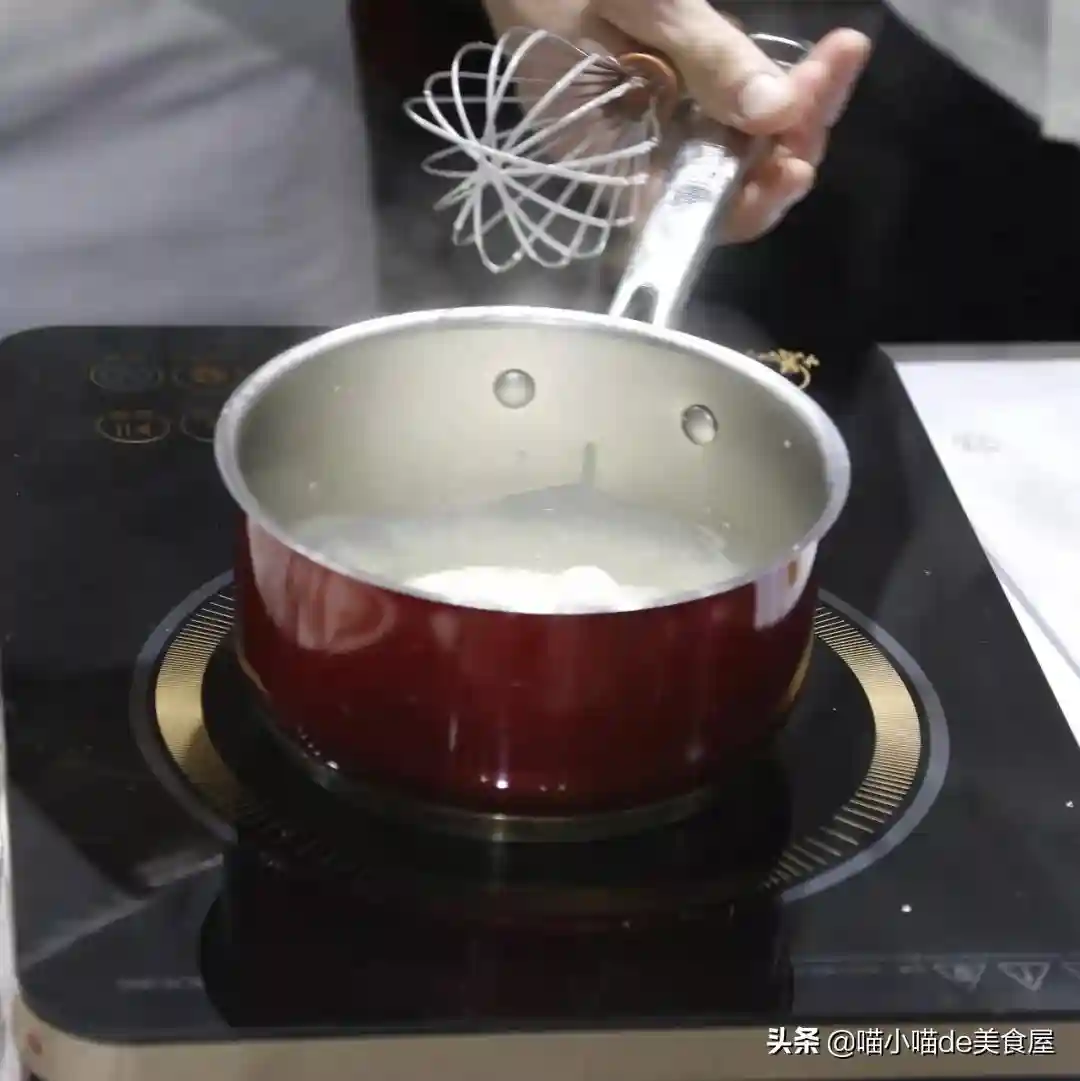 制作过程:1.将低脂牛奶倒入锅中加热煮沸,离火。