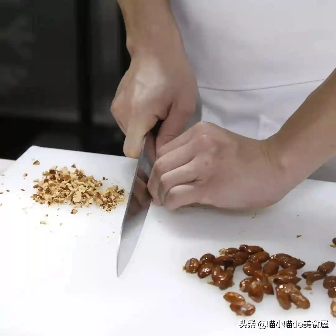 准备:1.将凝固的杏子果酱切成小丁,备用。
