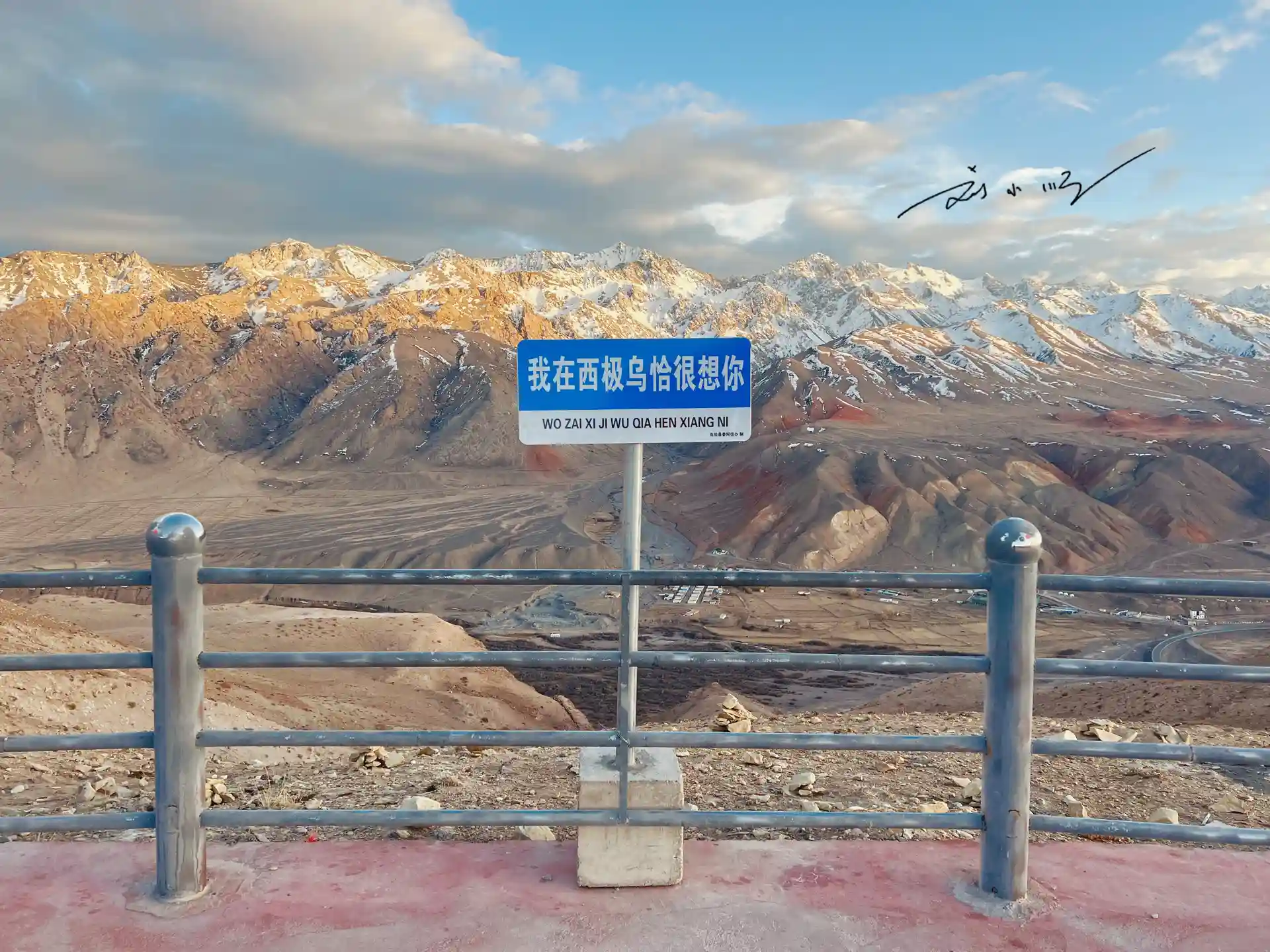 更有意思的是,当我们从“中国西极碑”走下来时,竟然还在周围意外地发现了一块“网红路牌”,路牌上写着“我在西极乌恰很想你”,相信大家应该都对类似的路牌不会感到陌生,全国各地的网红景点几乎都能见到类似的路牌,也算是印证了“中国西极碑”现在作为“网红景点”的身份。