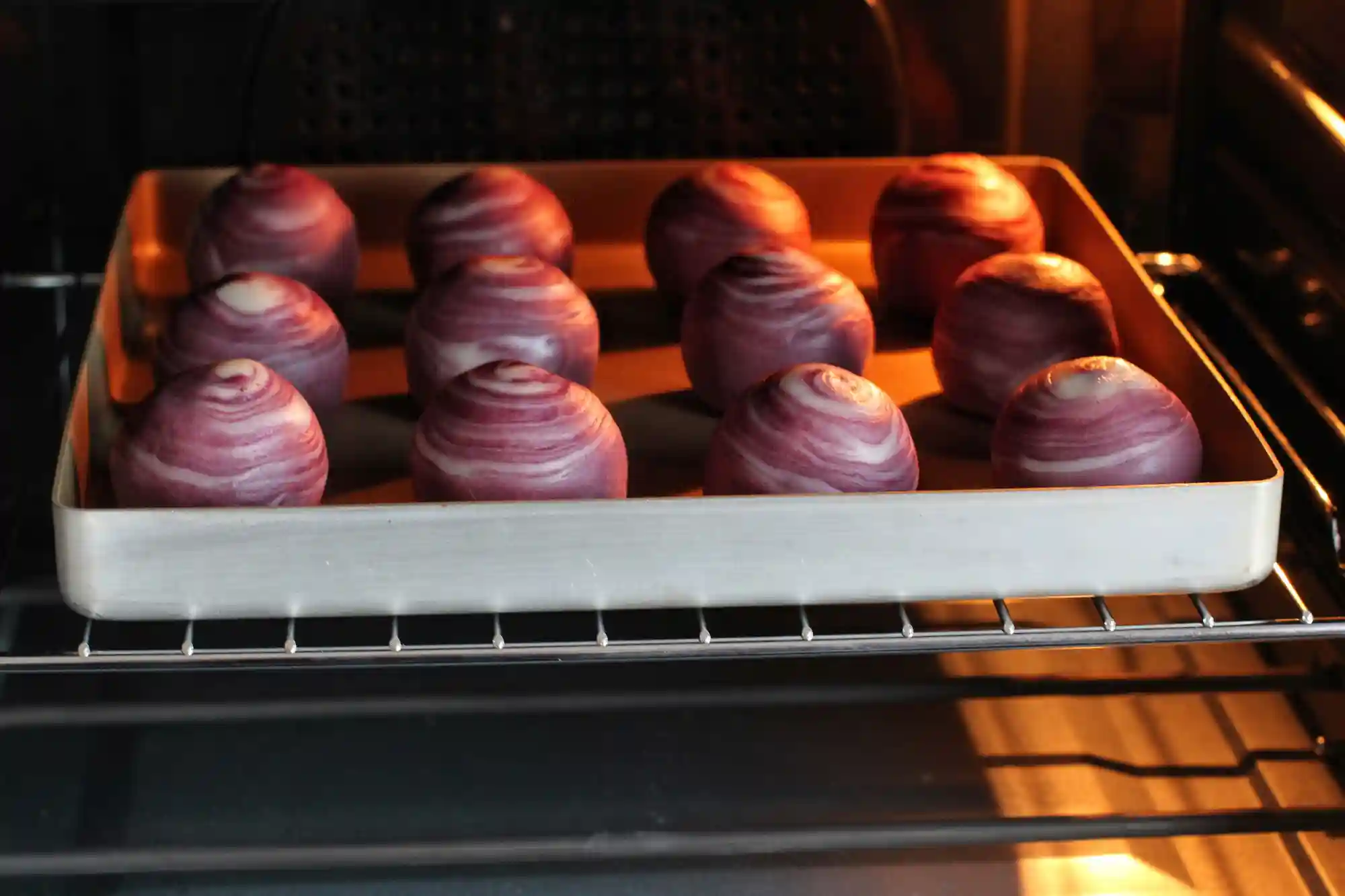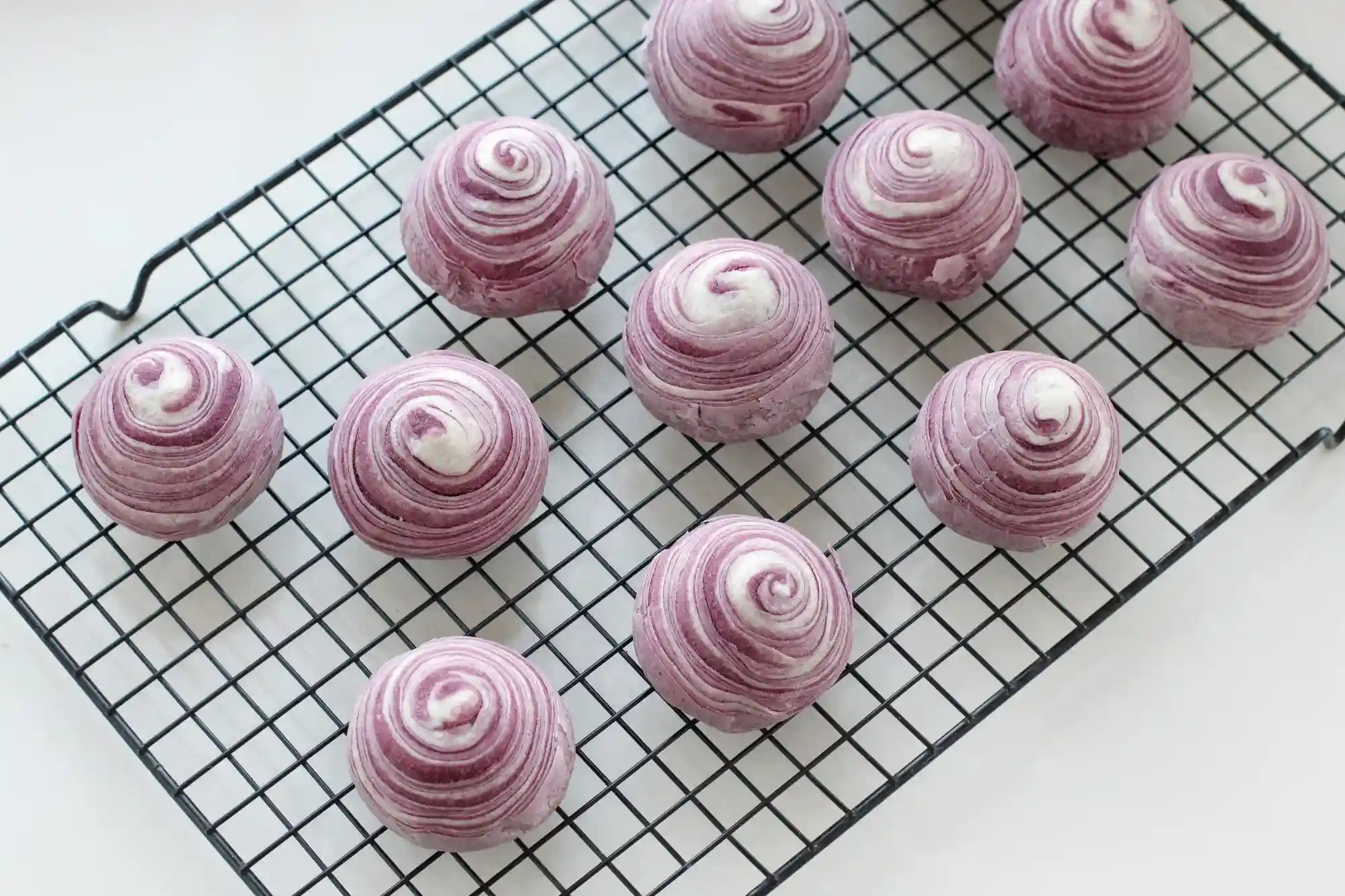 19.待紫薯酥的表面呈起酥状态出炉即可,移至烤网晾凉后食用。