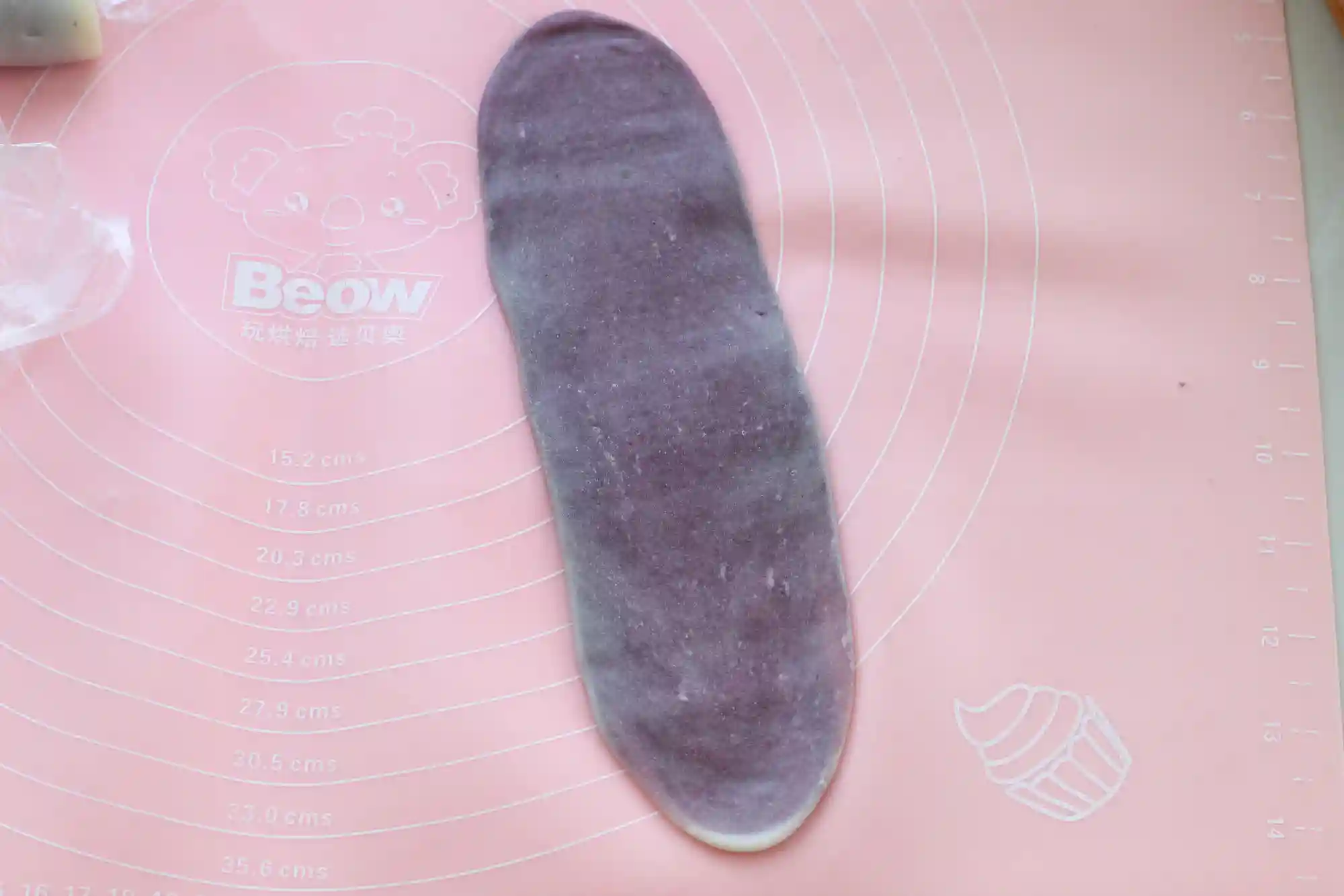 10.将松弛好的面卷顺着长度再次擀长,大约20-25厘米。