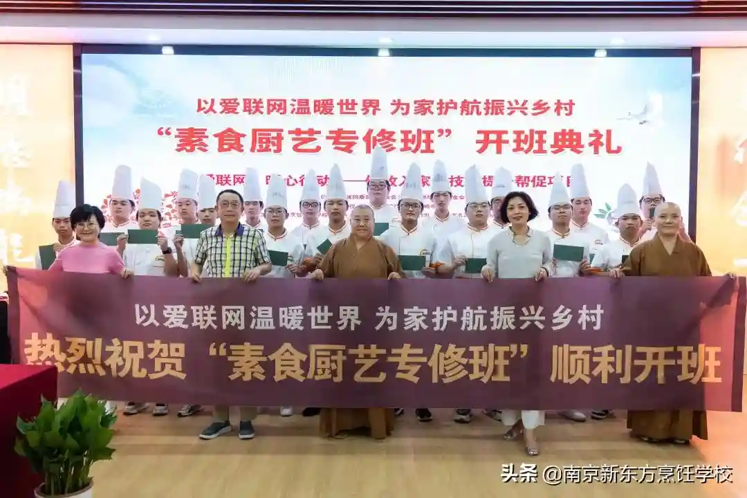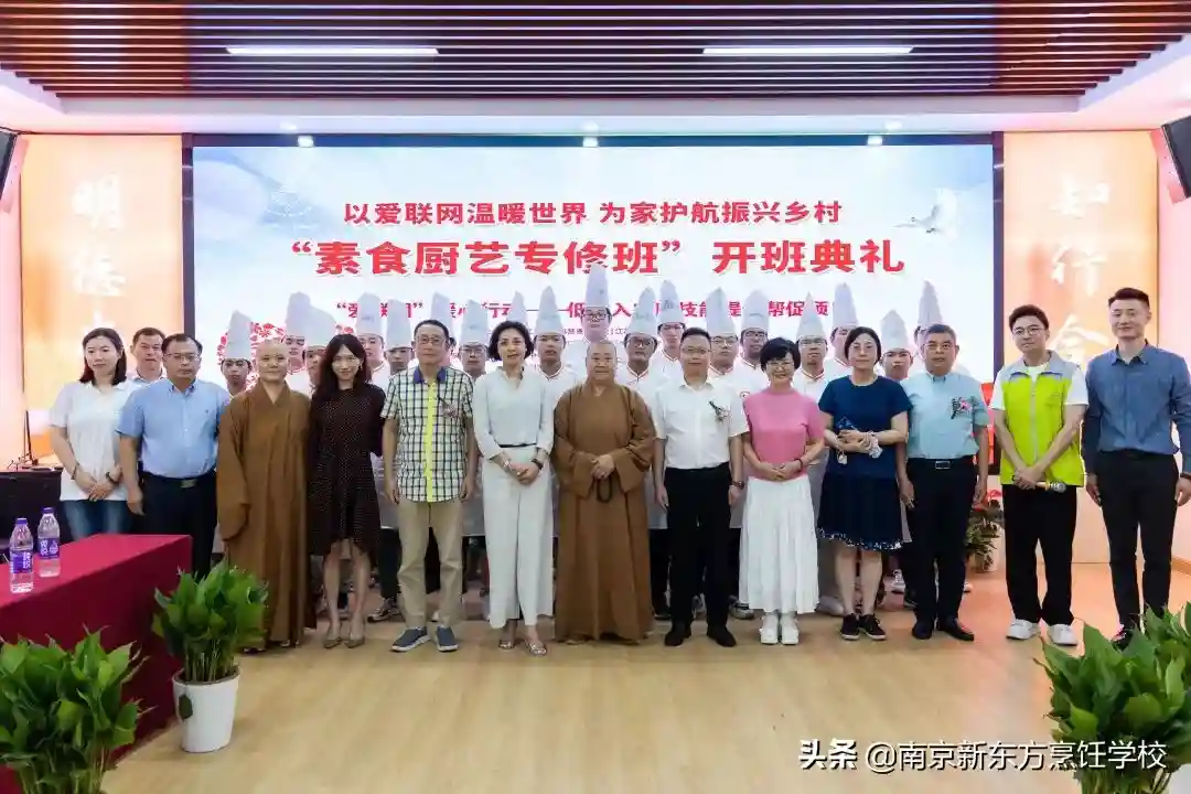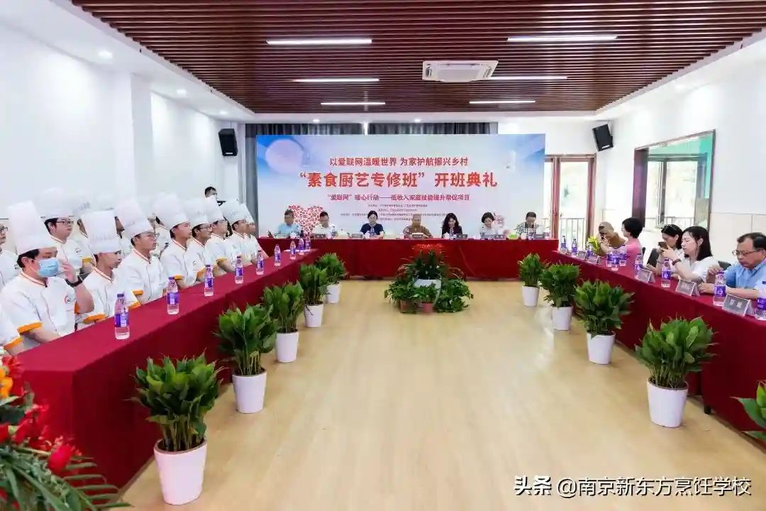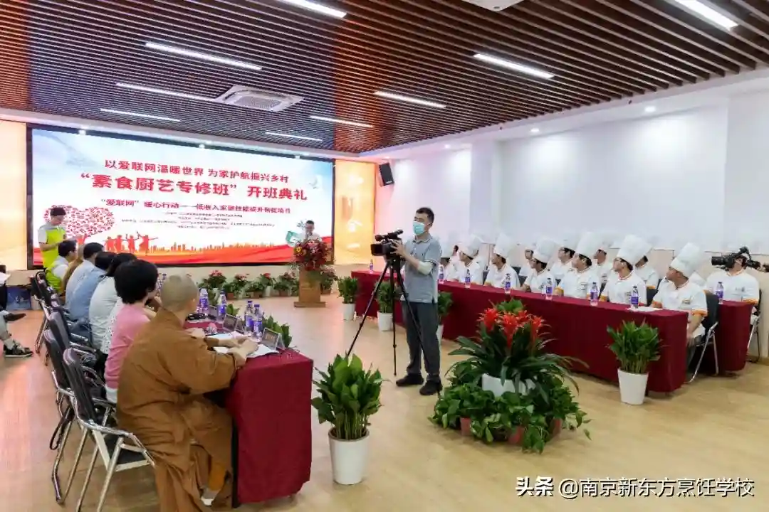 7月14日,“‘爱联网’暖心行动——低收入家庭技能提升帮促公益项目第二届暨首届素食烹饪专修班”开班典礼在江苏新东方烹饪技术学校隆重举行。