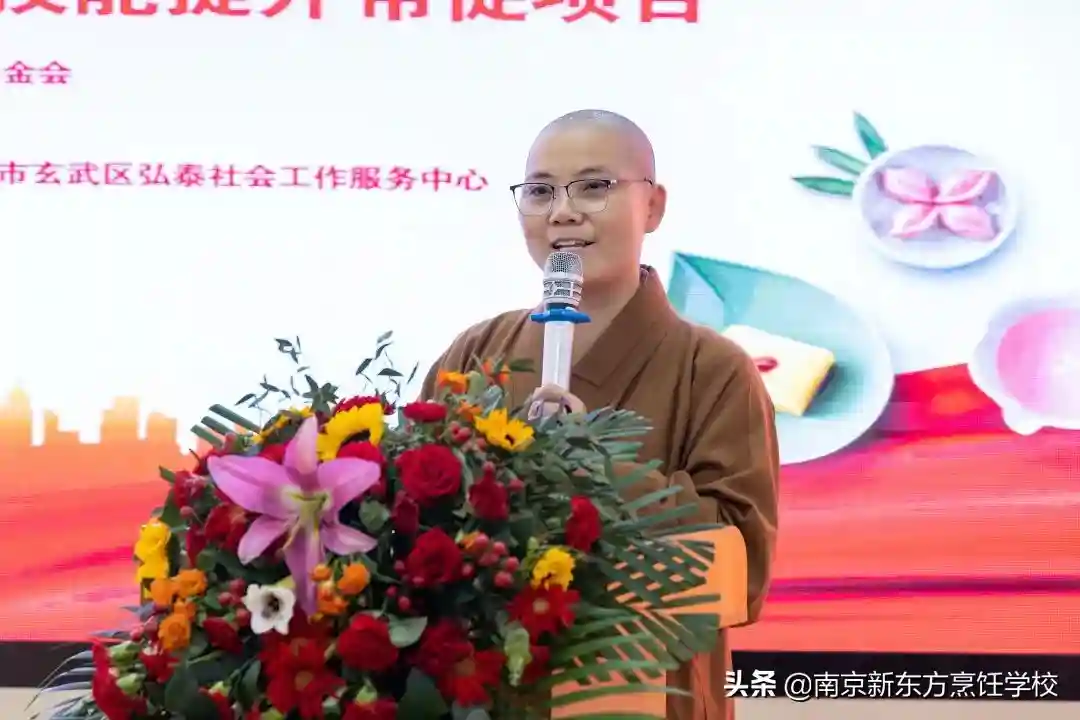 鸡鸣寺住持莲华法师还向学员们捐助生活费,以帮助他们克服生活上的困难,能够全心投入到素食烹饪技能的学习上。最后,本次典礼在鸡鸣寺住持莲华法师的开示下圆满结束。