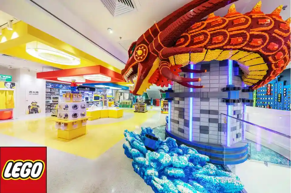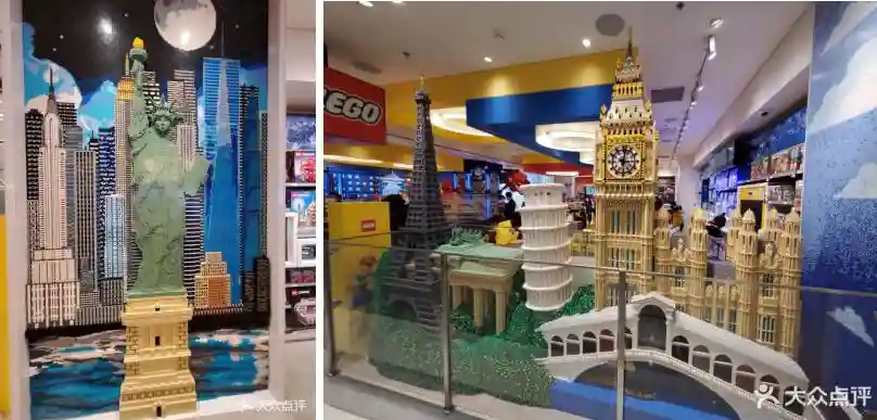 位于上海南京东路世茂广场的乐高品牌旗舰店,最出名的要数店里由乐高搭建的霸气巨龙、宏伟壮观的东方明珠、自由女神像、埃菲尔铁塔和大本钟,是顾客拍照打卡的绝佳胜地。