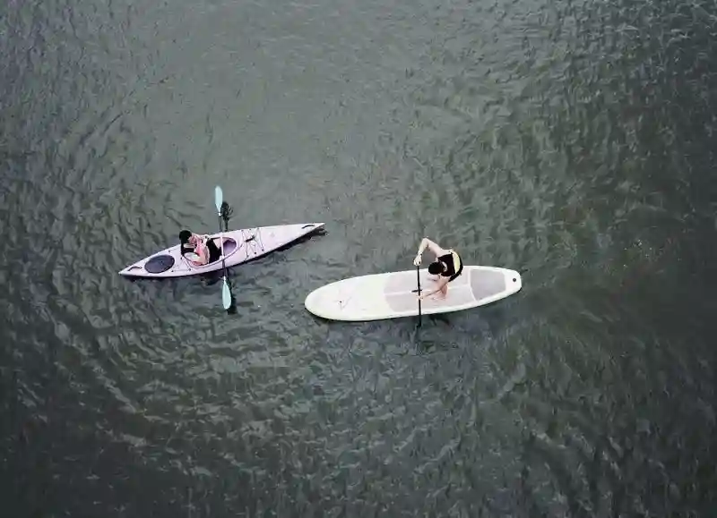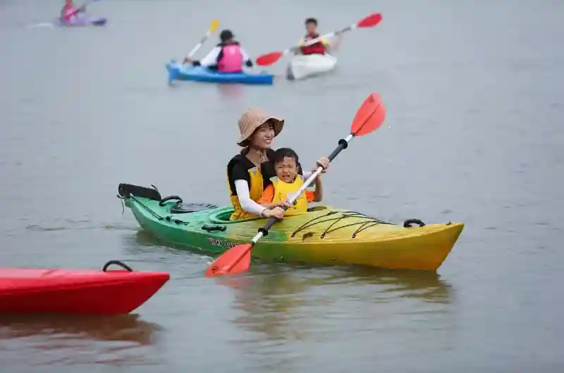 图中是在长田漾湿地公园,皮划艇、单人桨板大家正在体验水上运动的乐趣。