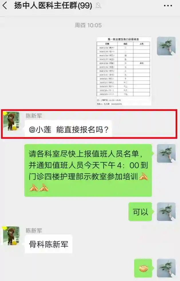 (扬中市人民医院医生主动报名/由受访者提供)