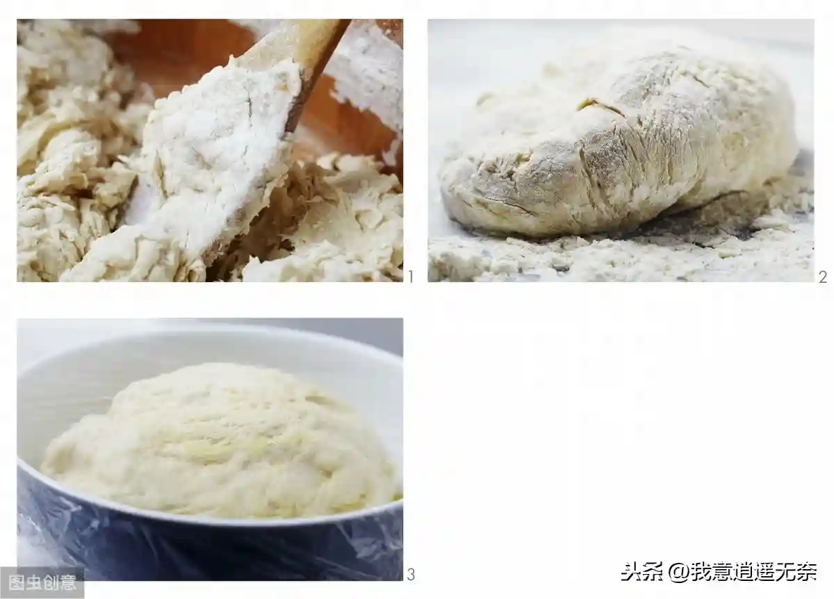 d.1与2混合,加入3揉面,最好用搅拌机,用手的话较累.尽量使面粉面筋全扩展.