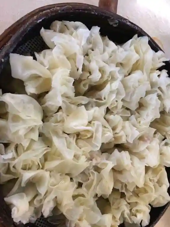 抄手其实就是我们常说的馄饨,南方人们习惯这样称呼馄饨为抄手,就是薄面皮里包上肉馅,而在川渝地区,这种美食一般会搭配上红油汤,红油抄手吃起来麻辣爽口,非常痛快。红色的油汤和像折花一样的抄手混合在一起,抄手上下浮腾,像小鱼一样调皮,别有一番趣味。