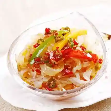 最后给大家推荐一个爽口小凉菜,绝对是聚会时最先被抢光的菜品之一,将海蜇皮切丝,放一点葱花、香菜和辣椒,用白砂糖、白醋以及蒜泥调味,清凉爽口。特别是在过年的时候,基本上一上桌即清盘,受欢迎程度可见一斑。
