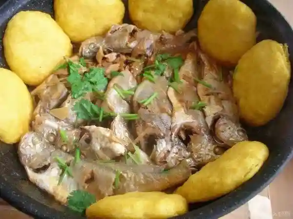 这是乳山人的最爱,也深藏着80后小时候的记忆。小时候的鱼锅粑粑一定是用农村里的那种灶炕大锅去炖的,当妈妈揭开锅盖的那一瞬间,满屋鱼香,那金黄色的粑粑颜色更是诱人,一群小孩儿围在锅边,眼巴巴望着,口水直流,一口粑粑一口鱼,简直不要太好吃!
