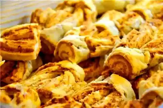 制作的发面食品,形状为菱形