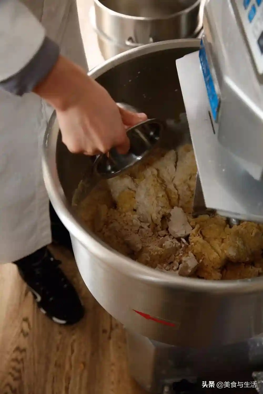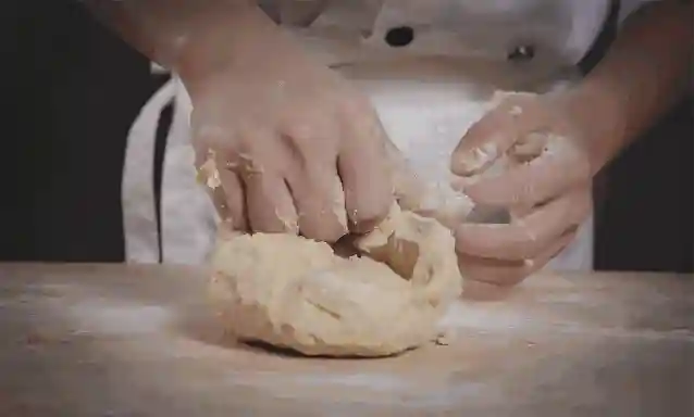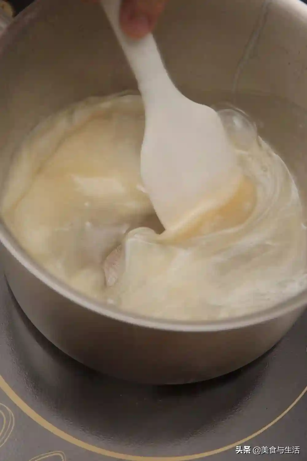 2.搅拌至面团表面光滑,有延展性,并能拉开面膜。