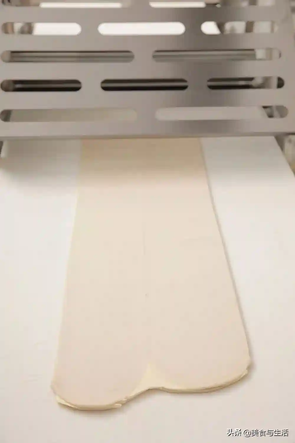 10.将制好的面团擀开至0.4厘米厚,擀压一边在38厘米宽。
