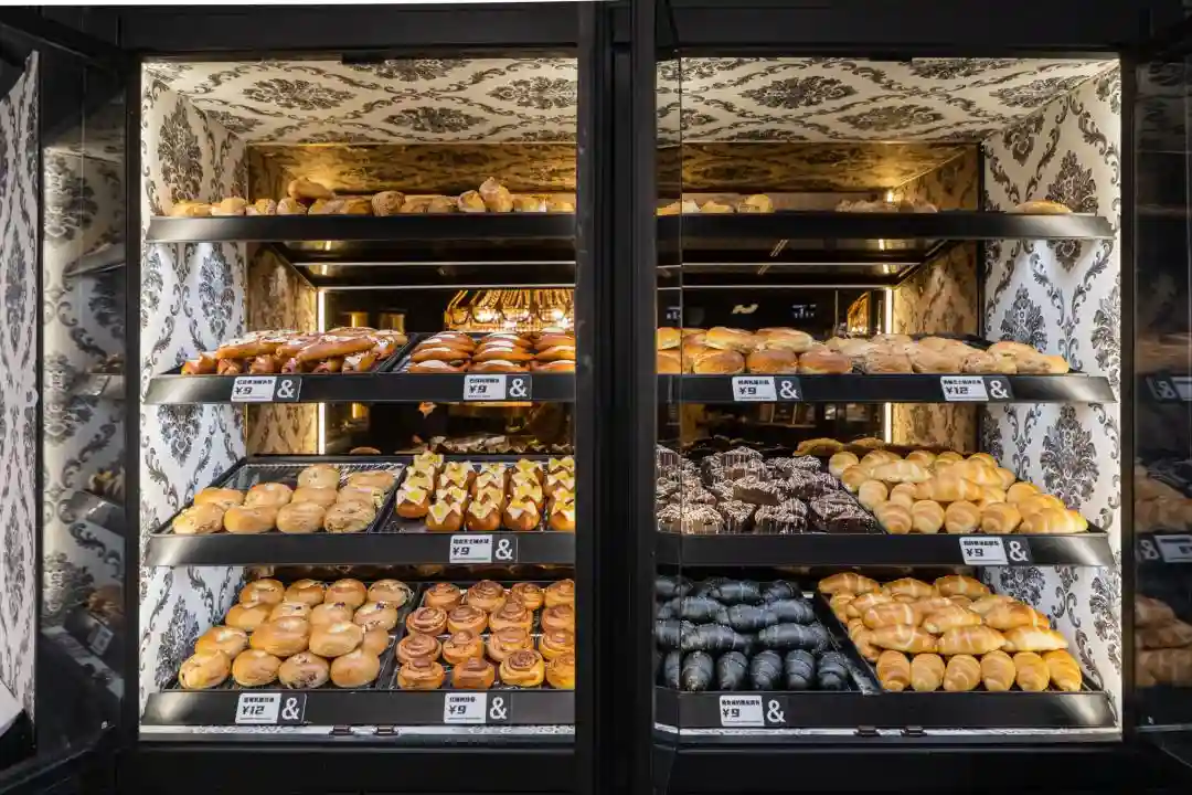 用“高奢珠宝展示柜”放置面包。BC门店的面包陈列柜灵感来自奢侈品珠宝展示柜,Aben将这个设计称为“烘焙行业的革命”,在陈列产品的基础上,加上“社交属性”,即“好看、好拍”大于功能。