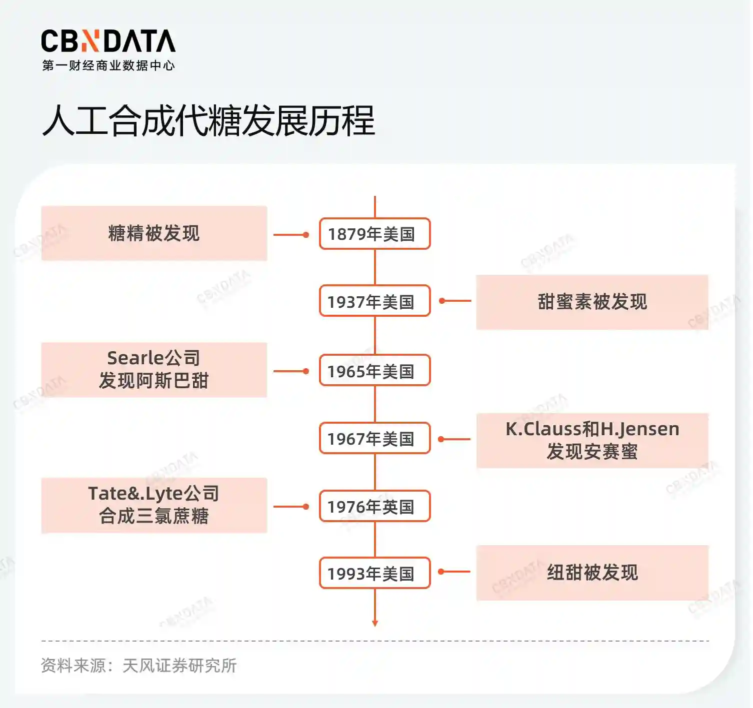 事实上,代糖已有140多年的历史,其在历史舞台的正式登场,始于糖精在一次化学实验中被偶然发现。而代糖的真正流行,则源于两次世界大战期间食糖的短缺及价格的快速上行,糖精作为替代品得到广泛传播和市场化发展。