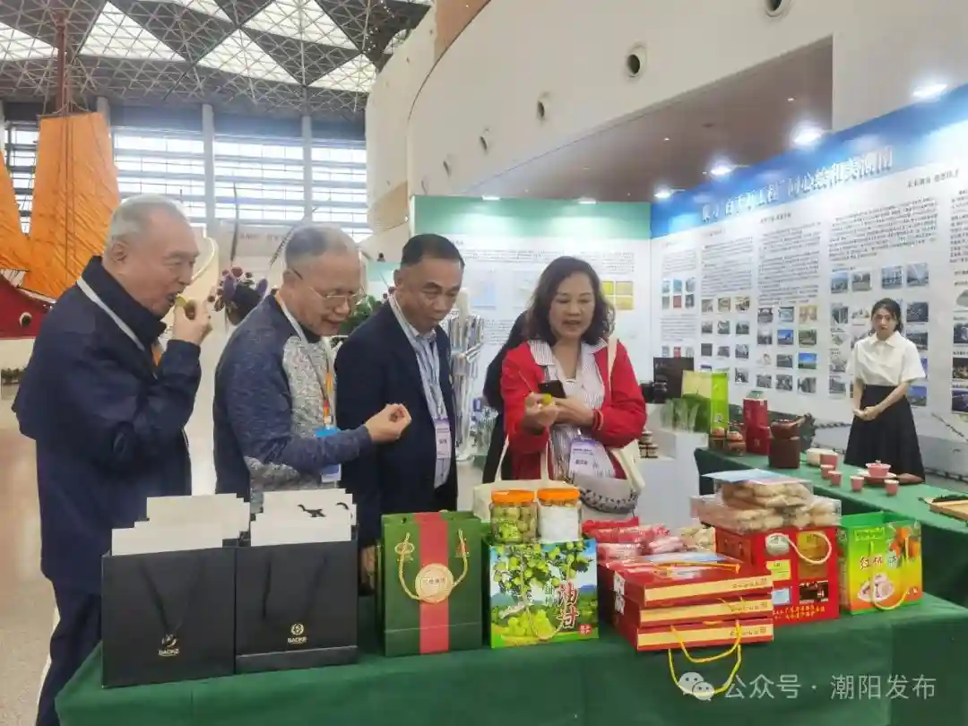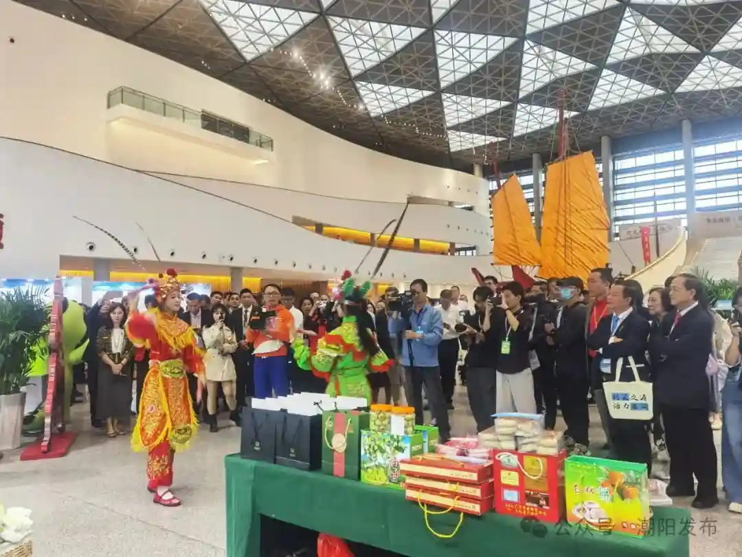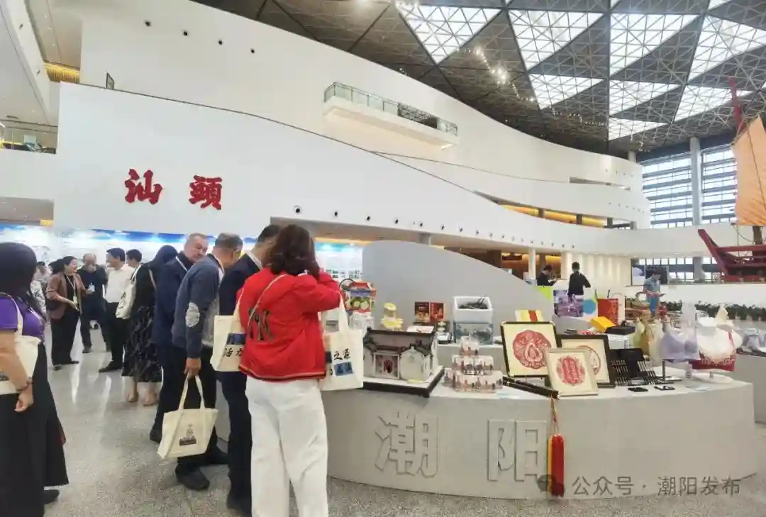 在潮阳展区,有纺织工业产品、特色水果,还有剪纸、金漆木雕、贝雕等非遗文化产品展出。现场讲解员向海内外潮籍乡亲介绍潮阳“百千万工程”成果,西门女子英歌队员为大家带来精彩表演,海内外亲人一边品家乡美食,一边欣赏非遗表演,感受家乡的发展变化,其乐融融。