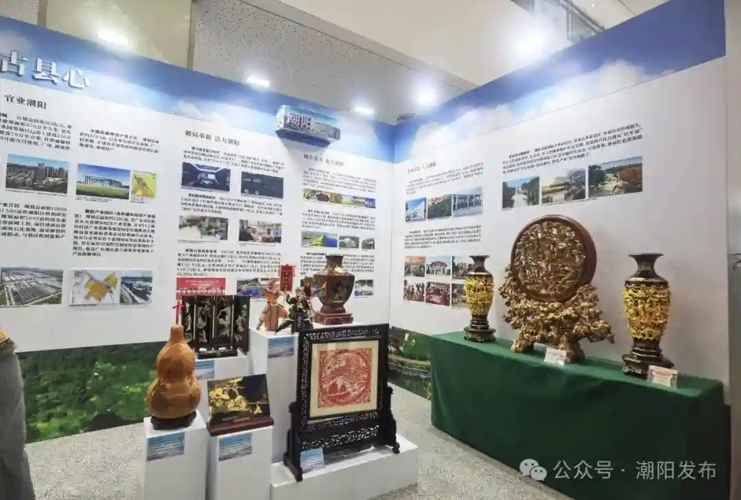 潮阳区“百千万工程”解说员林怡婷说:“潮阳展区主要展示工业产品,还有潮阳特有的文化产品、潮阳的水果、非遗的糕点等。分为三部分:第一部分是工业发展,第二部分是城乡区域协调发展,如基础设施、特色产业等,第三部分就是侨乡文化。希望在‘两大盛会’期间,让华侨能够更好了解潮阳的发展状况以及潮阳‘百千万工程’的成效。”