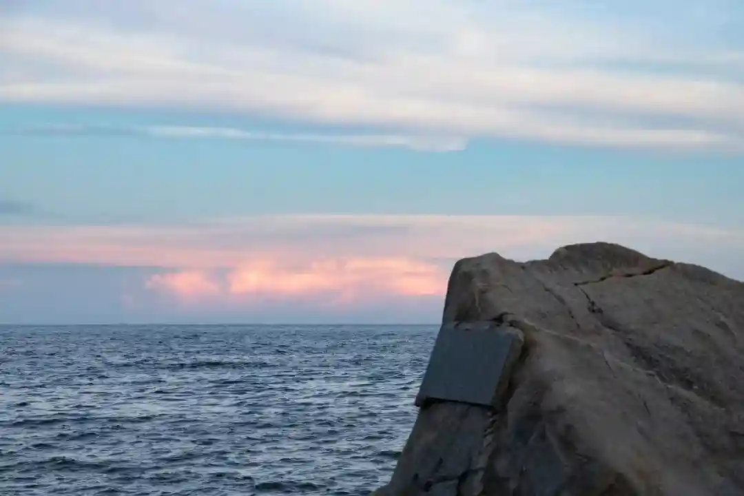大堆云朵状的花岗岩围起一座小山,远处看像一朵莲花盛开,站在海边看夕阳、吹海风,没有什么烦恼是忘不了的。