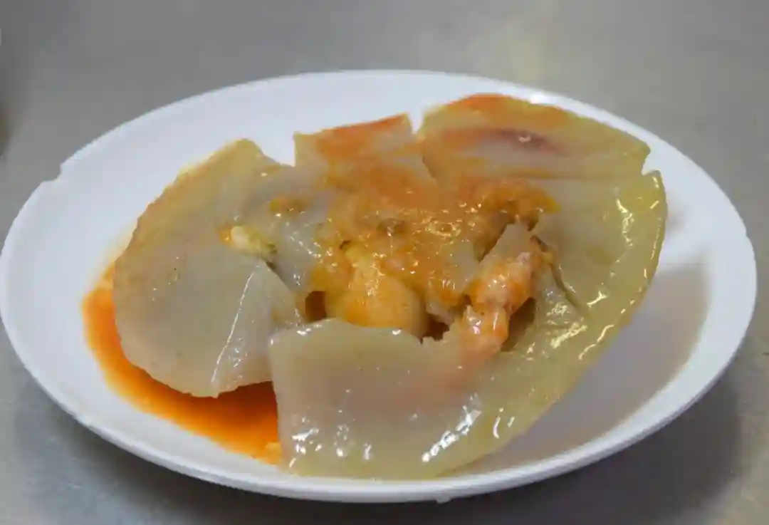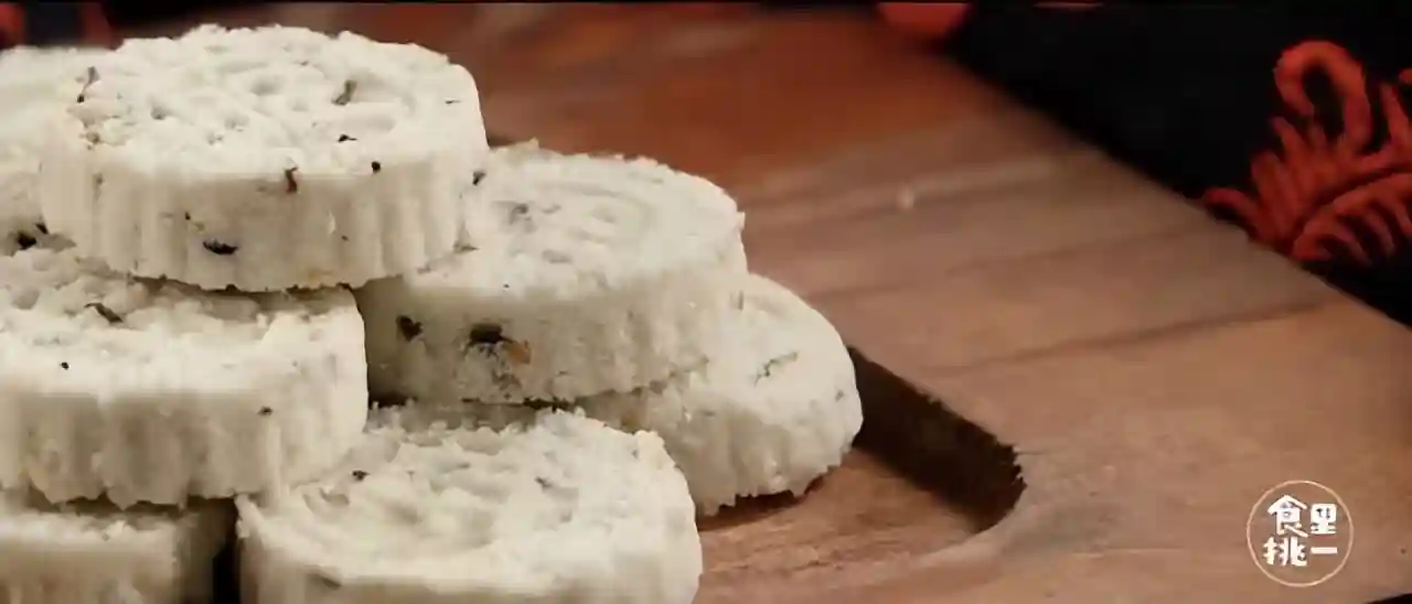 鲎粿一般会用新鲜海鱼海虾熬汁取其鲜味,辅以香菇、花生仁等,与木薯粉结合做成粿。