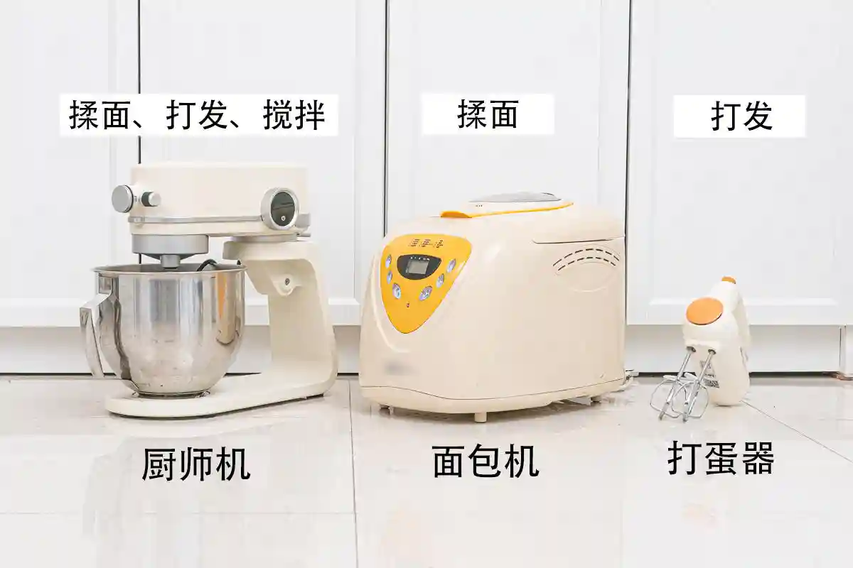 ▼作为一个烘焙从入门到小有心得的值友,在器材上的投入上也走了不少的弯路,从入门面包机、外资旗舰面包机、手持打蛋器,烘培各种失败,再到使用厨师机后烘培才慢慢得心应手。首先给大家一个结论,有了厨师机就不再需要去购买面包机和手持电动打蛋器了。虽然从原理上来讲,面包机也可以揉面,手持电动打蛋器也可以打发蛋清和淡奶油,但它们与厨师机比,不管是效率还是出品的效果,再到稳定性、耐久性,都有不少的差距。