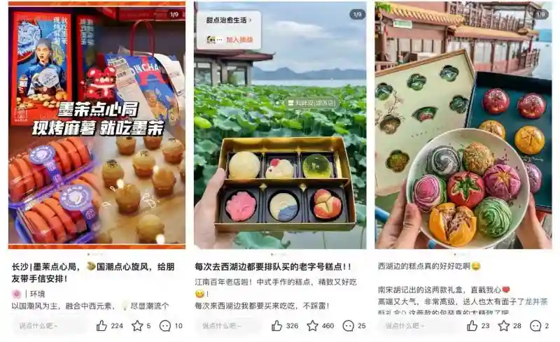 在长沙和杭州的街头也有不少国潮糕点铺,成为年轻人选购返乡伴手礼首选。长沙有墨茉点心局、吴酥生、南北特、沙利文、馬復勝、三吉斋、九如斋,杭州有知味观、南宋胡记、江南春、采芝斋等糕点品牌,应年轻消费者的需求,国潮糕点种类“卷”出了新高度。
