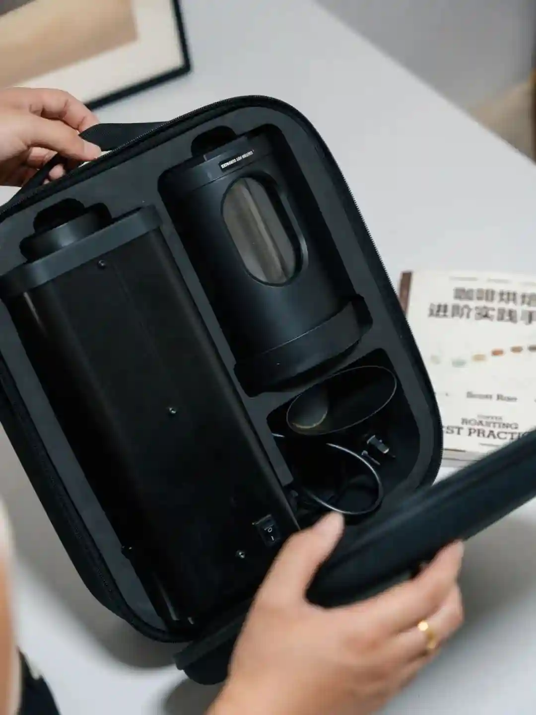 拆卸之后装到随行箱中便于携带,在户外露营场景、在咖啡产区,在旅行途中,都可以随时随地进行咖啡烘焙,解锁一杯舒心的咖啡。
