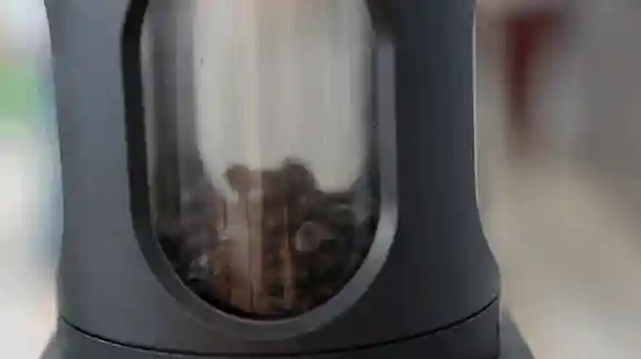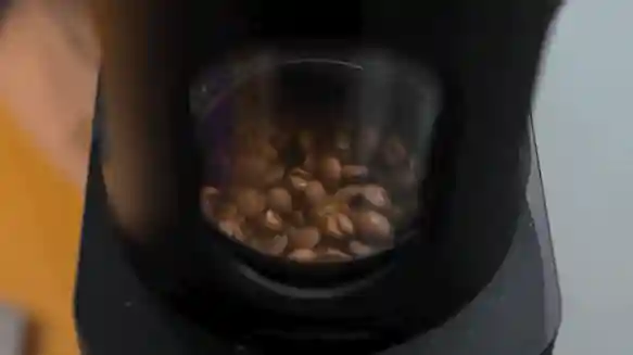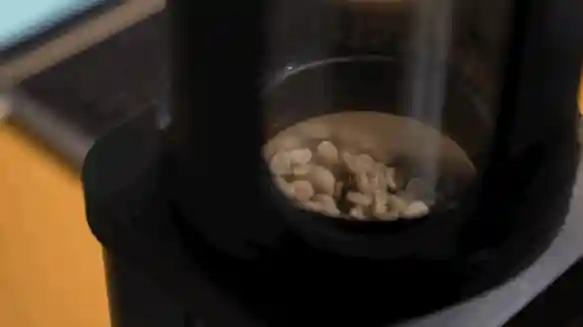 10分钟后,咖啡豆结束烘焙,就会进入冷却模式,冷却之后拆下上部的烘焙观察口,就可以把烘焙好的豆子倒出来了。