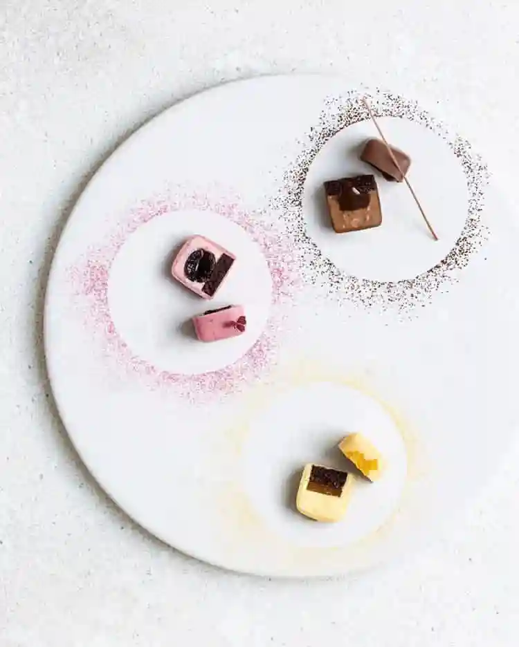 注重设计感和线条感。用极简无规则的裱花线条或点缀巧克力豆、花瓣等在蛋糕表面,瞬间成为高级艺术品。