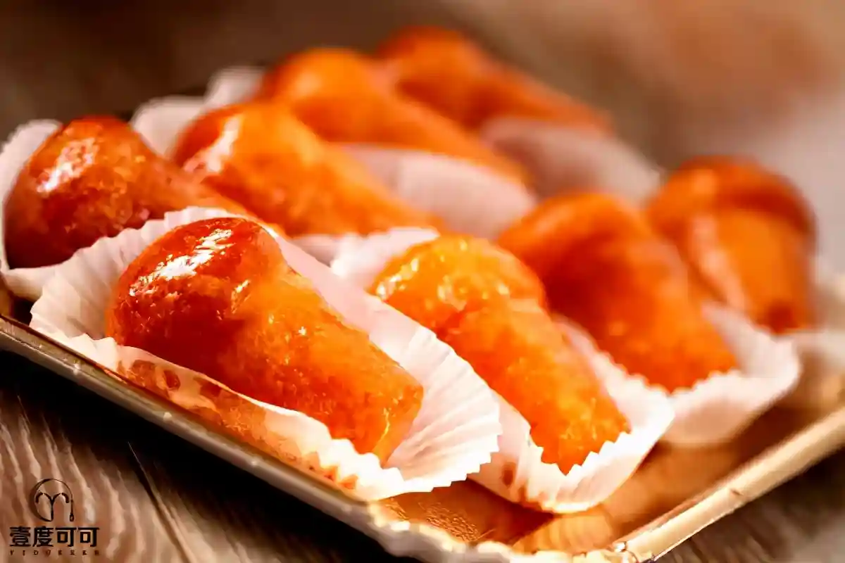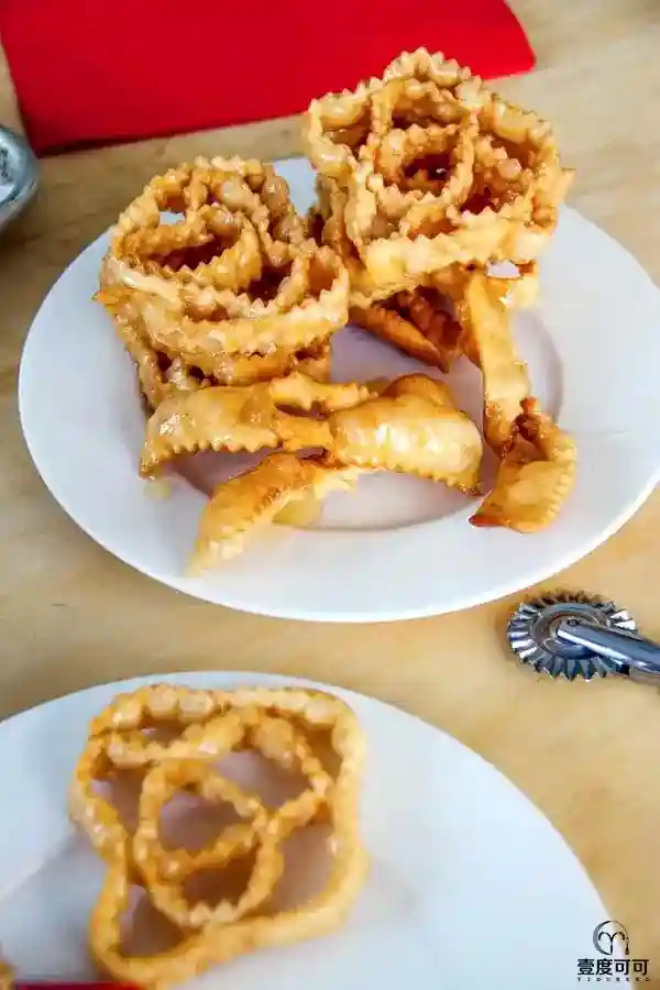 风车状的油条蘸蜂蜜或葡萄酒糖浆,也可以在上面撒糖粉,坚果或干果。