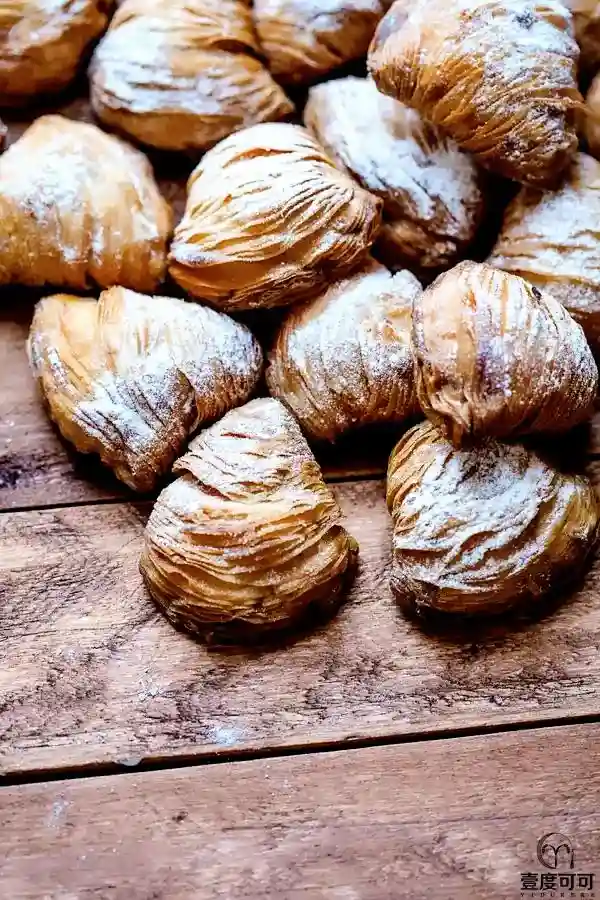 脆皮的酥皮壳和厚厚的酥皮糕点馅料,略带柠檬味,全部冠以大量的松子和糖粉。这种软奶油和松脆耐咬的酥脆酥皮糕点之间的对比让人感到舒适