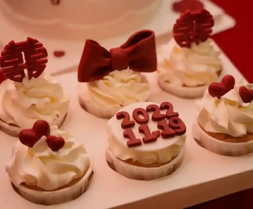 ·敬茶用品、鲜花、气球、糕点、婚书等摆台装饰。