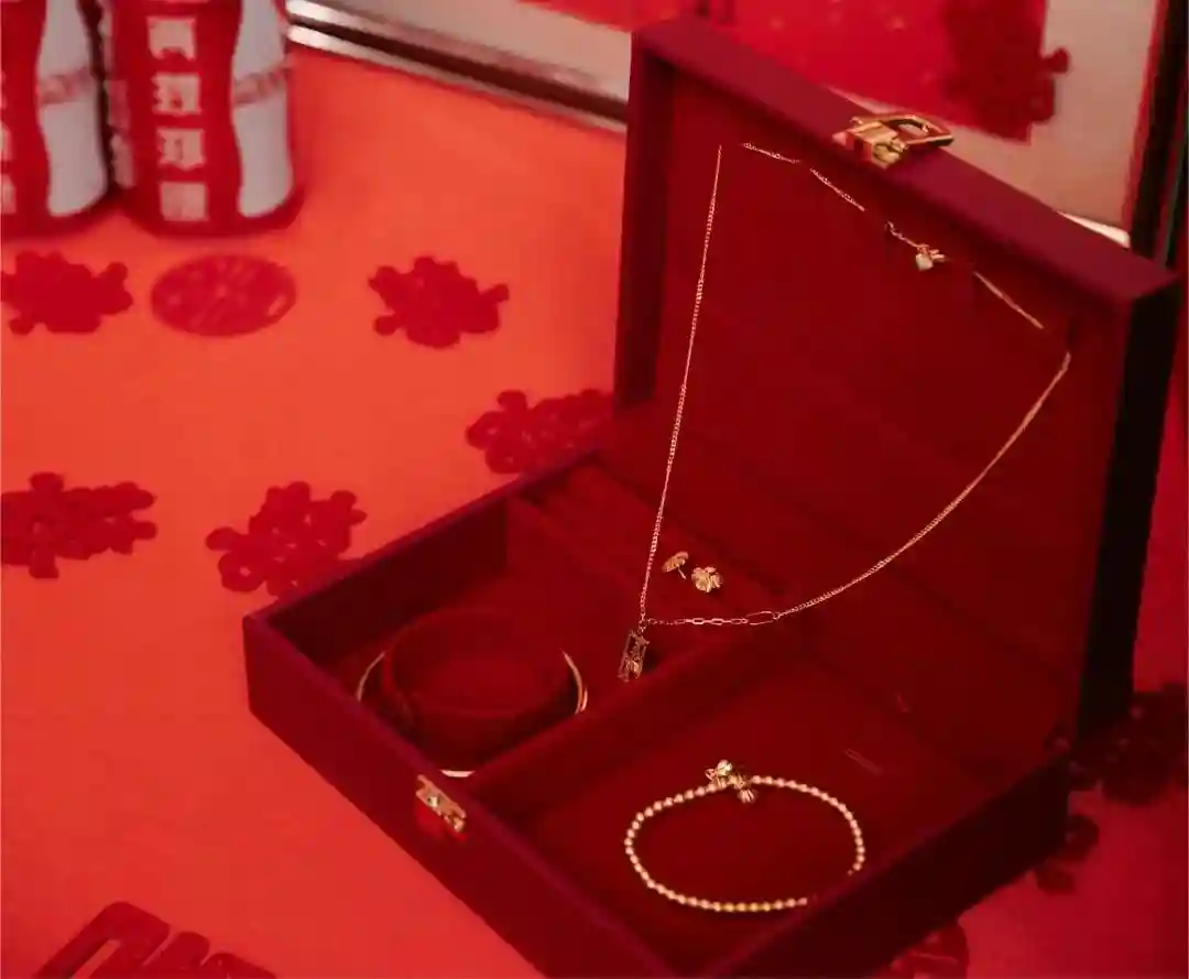 三金/五金:包括金项链、金耳环、金戒指、金手镯、金吊坠,一般在订婚时随聘礼一同给到女方,这是一种礼数,它能展现男方准备迎娶新娘的诚意。