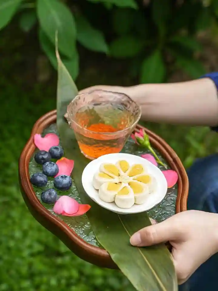 “因为法根本身是跟着时令来走的,所以我们现在很多茶点都会讲究造型,还有色彩搭配。跟茶搭配在一起,绿豆糕就要做得小而精致。”法根的李婷打开手机相册,给记者看照片。