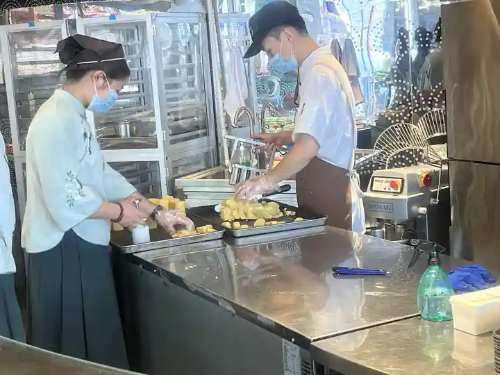 “今年可以说是近五年最好的一年,大型会议多了,我们创新的宋韵糕点被当成伴手礼。还有一个新的增长点,以前会议茶歇摆台都是用西式糕点,现在逐渐会用传统糕点来代替。”接到记者电话时,金华老字号“糖古糕点”主理人徐家兴正忙着送糕。“我们的绿豆糕是传统非遗工艺,配方低糖少油,每一枚都还是敲出来的”。