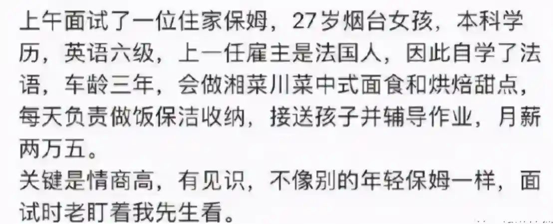 潇湘晨报:您在网上说面试了一个月薪两万五还会法语的保姆是真的吗?您雇佣了她?