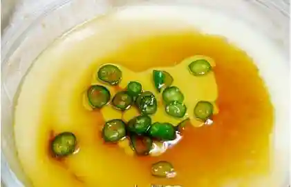 主料鸡蛋2个辅料尖椒碎1/4个酱油1/2大勺香油1/4大勺盐1/4大勺白开水100g