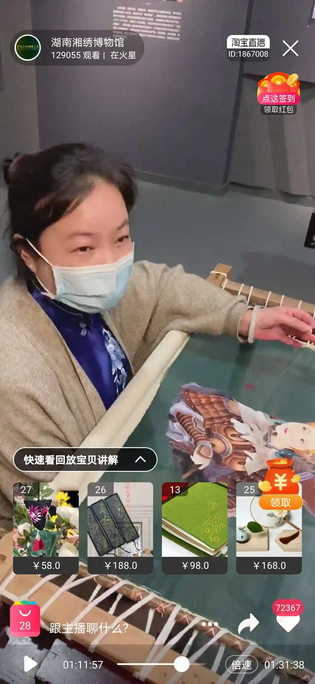 近日湖南湘绣博物馆首次尝试“一起云春游”淘宝直播,吸引了80多万粉丝在线观看。经典藏品展示、传承人刺绣表演、历史文化讲解……副馆长方菁带领粉丝们体验"四大名绣"之一的湘绣魅力。谈到直播的效果,方菁坦言湘绣属文创产品,经济效益不会立竿见影,但社会效应毋容置疑。“实体展馆接待量有限,但是直播让80多万人看到了湘绣,知道湘绣博物馆,挖掘到潜在客群,为线下引流。”据悉,改造后的湖南湘绣博物馆新馆争取上半年试运营。