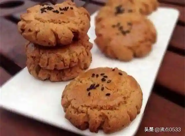 (2)用模做成形坯,表面撒压芝麻。核桃仁。
