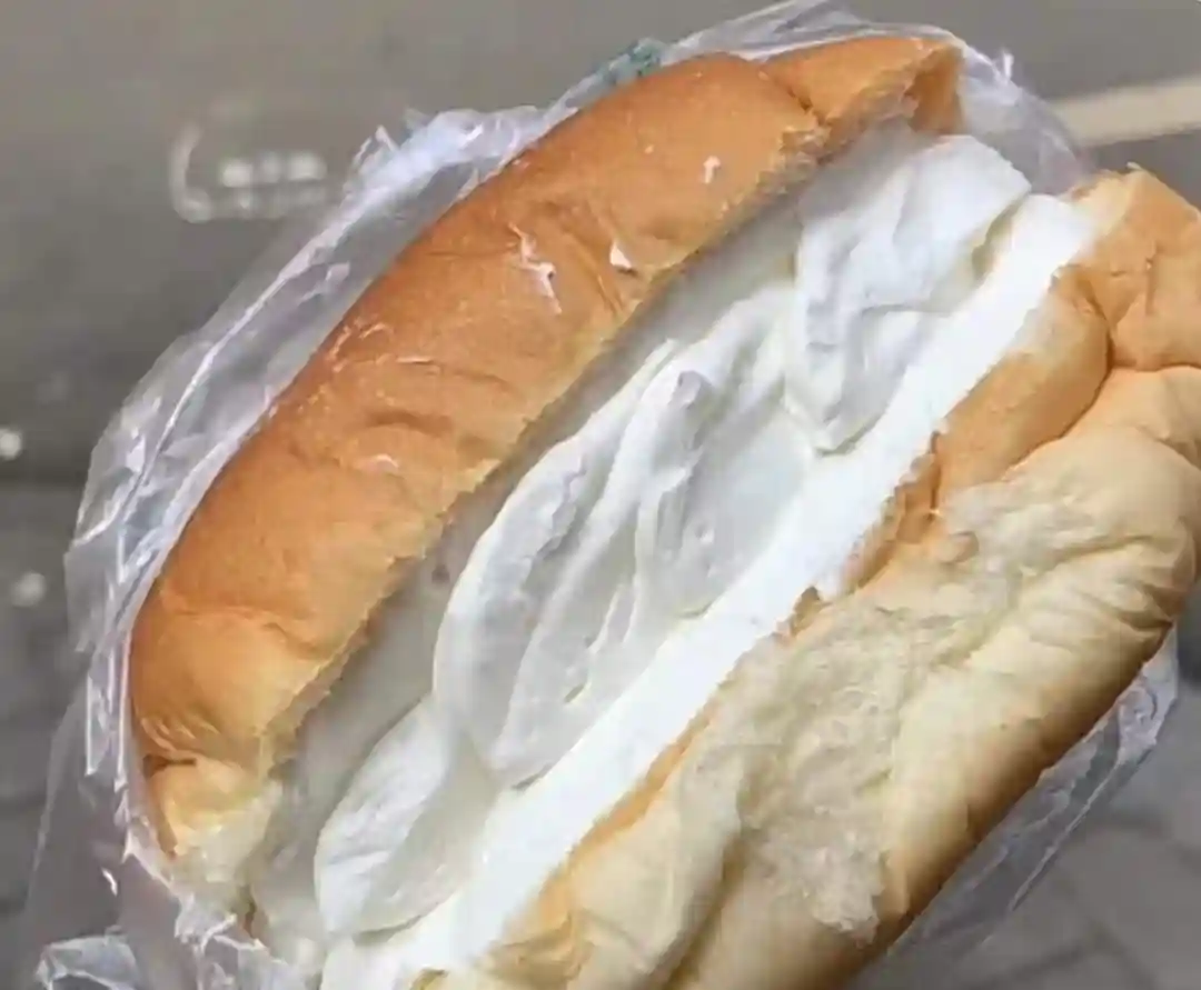 有一段时间,这款奶油夹心面包在中小学中十分流行,两层面包口感松软,夹着厚厚一层白奶油。