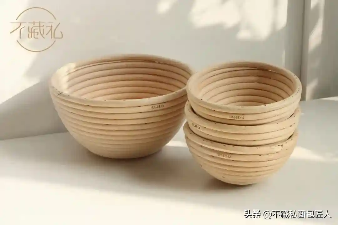 乡村面包的圈圈花纹这么美,怎么可以没有发酵藤篮!发酵藤篮以圆形、椭圆形为主,尺寸不尽相同,根据面团重量来做出相应的选择就可以了。