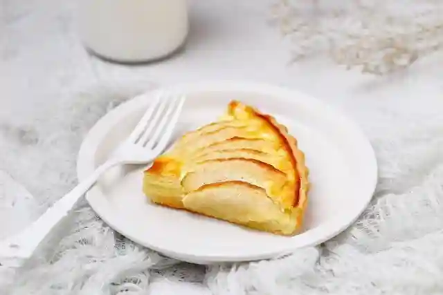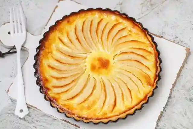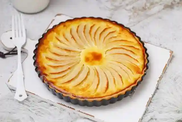 11.待派馅和苹果片呈焦黄色出炉即可,脱掉模具切块食用,口感嫩滑、奶香十足,赶快试试吧!