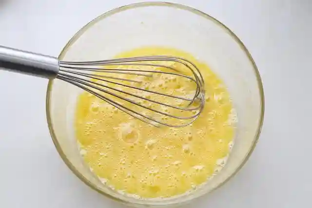 4.将鸡蛋磕入碗中充分搅打,然后加入细砂糖搅拌均匀。