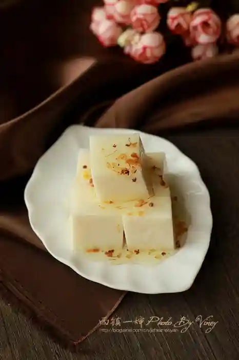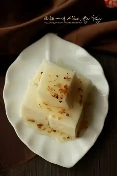 5、吃的时候,切成小块。如果想要正宗的老北京吃法,可以再淋上一点糖桂花。